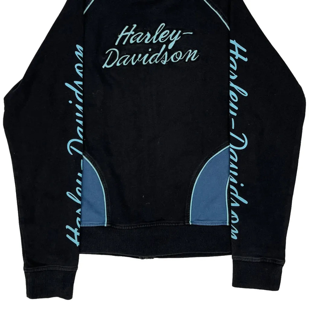 Harley Davidson Spellout Zip Up - Large Black Cotton