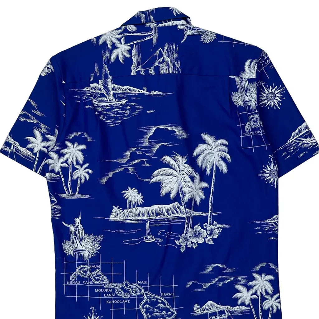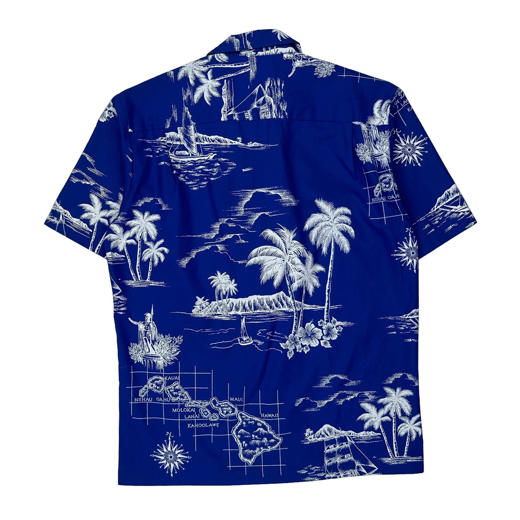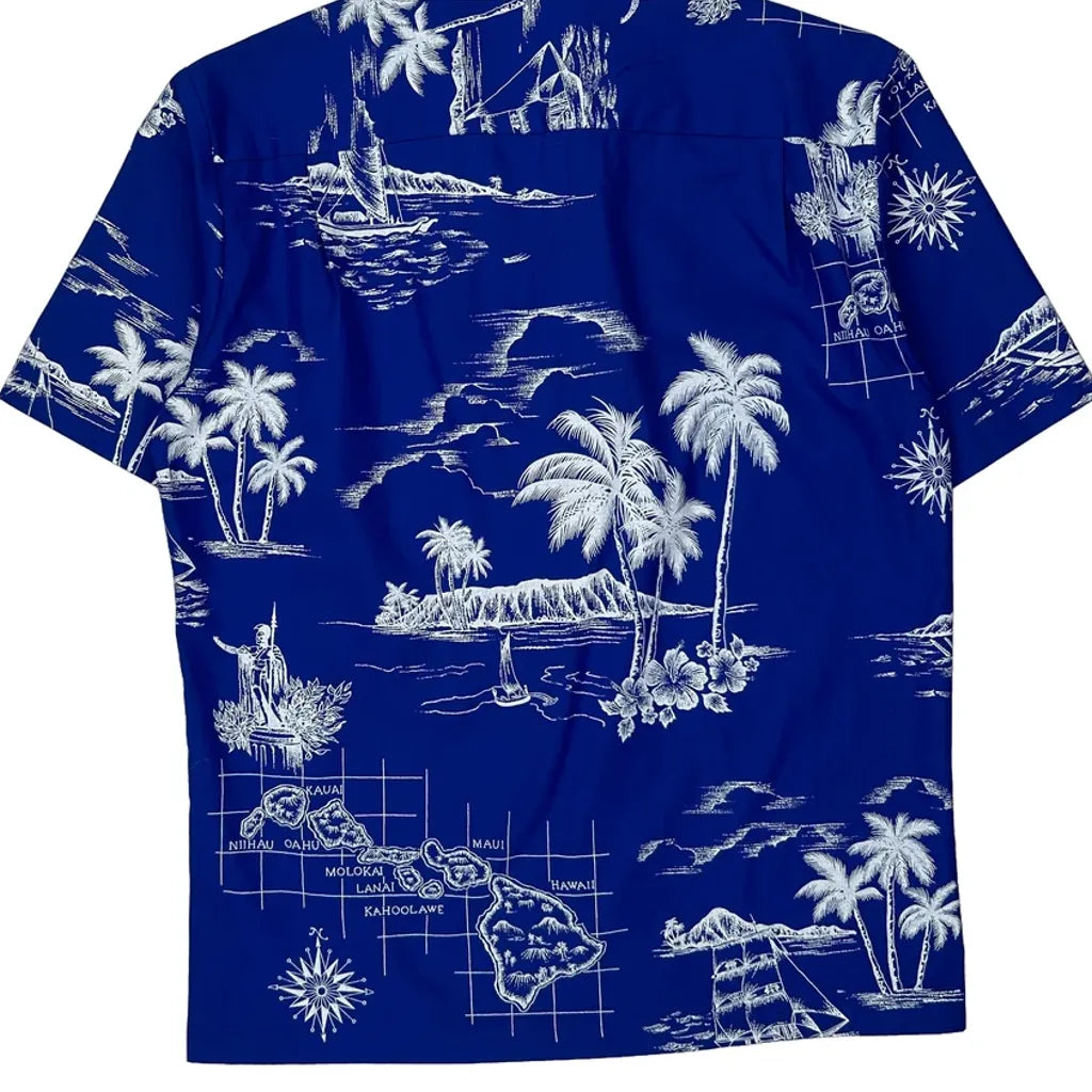 Hawaiian Islands Royal Creations Graphic Hawaiian Shirt - Small Blue Polyester Blend