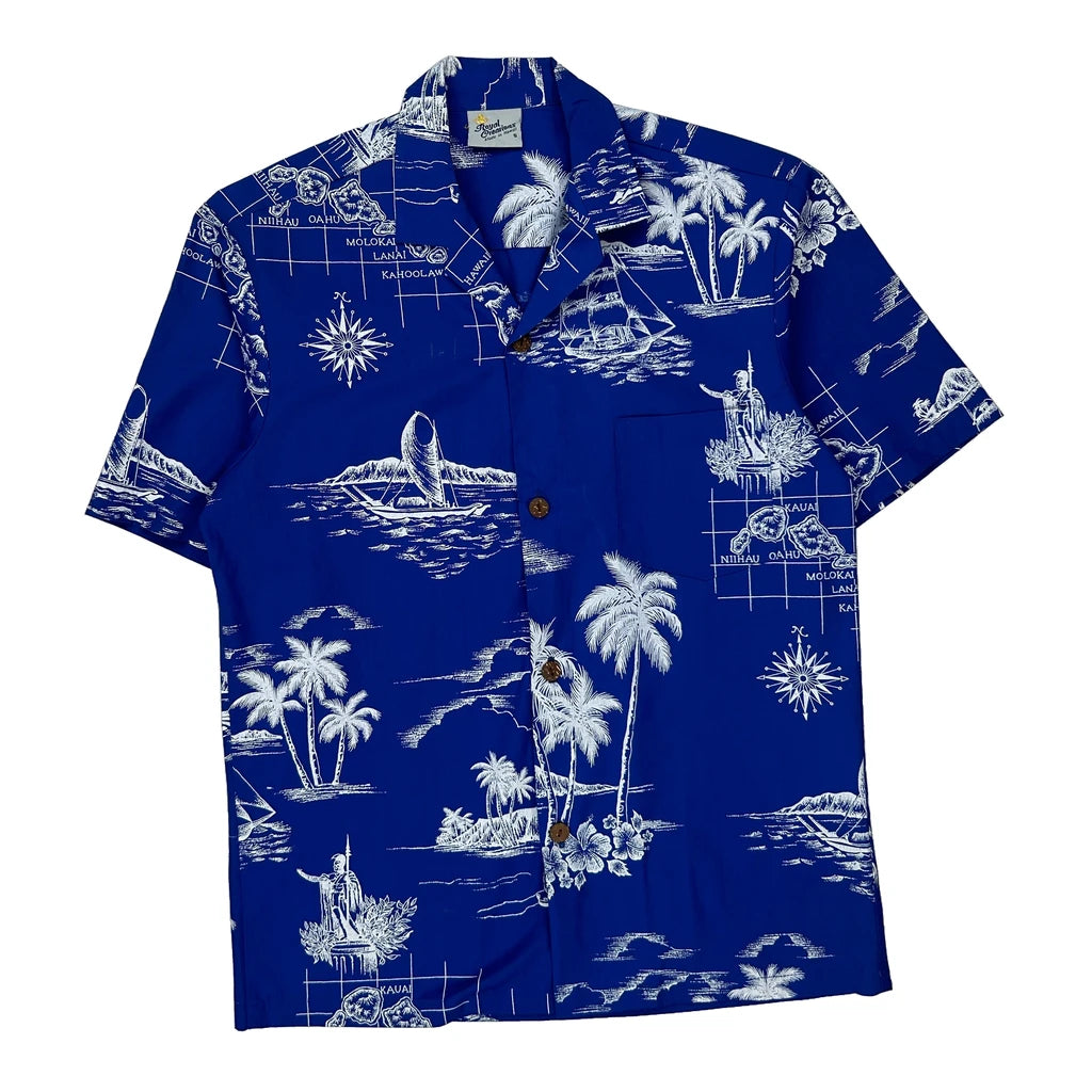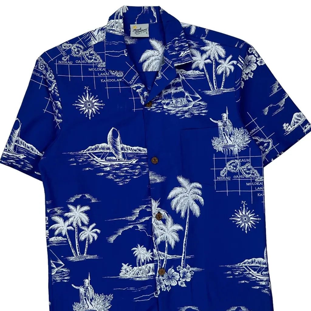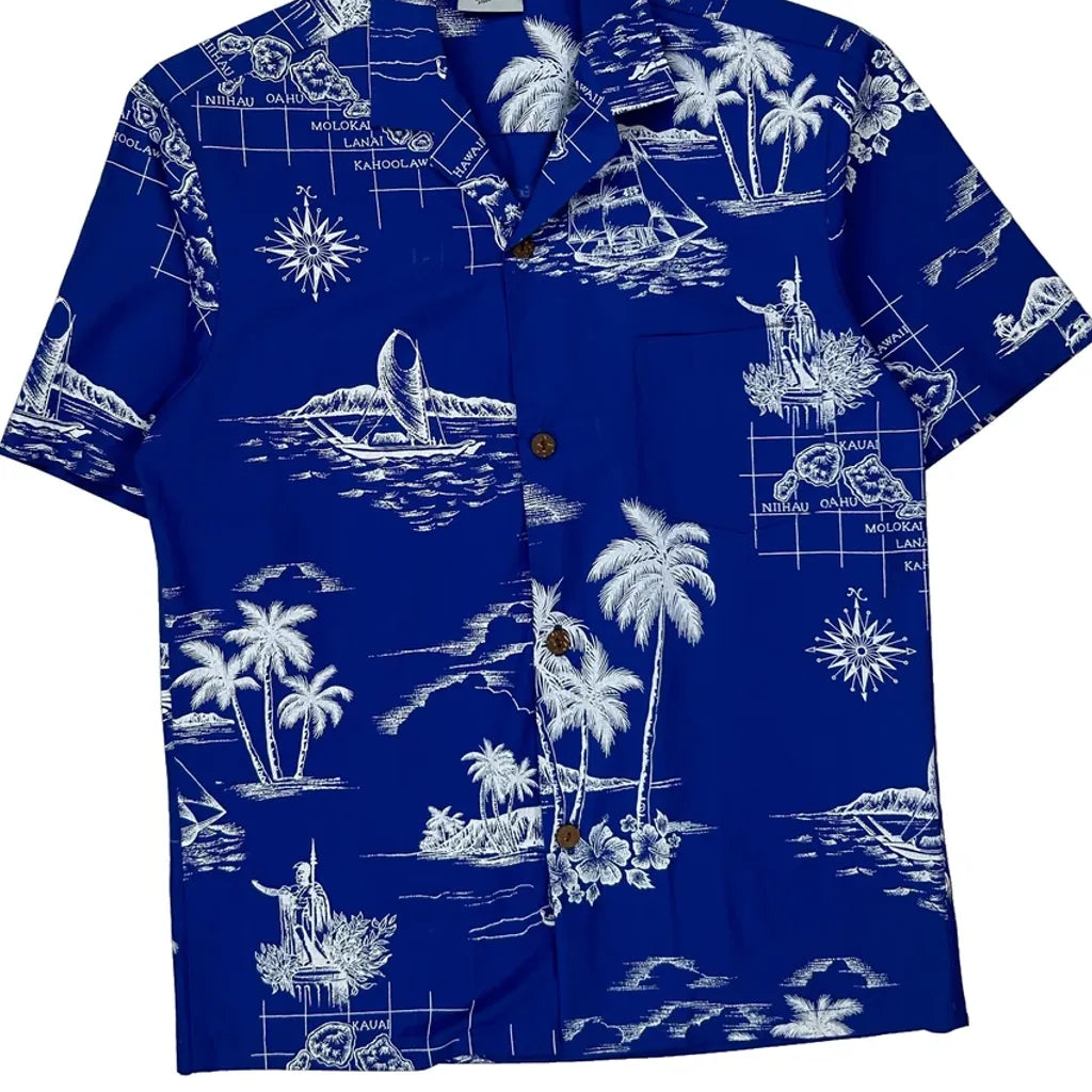 Hawaiian Islands Royal Creations Graphic Hawaiian Shirt - Small Blue Polyester Blend