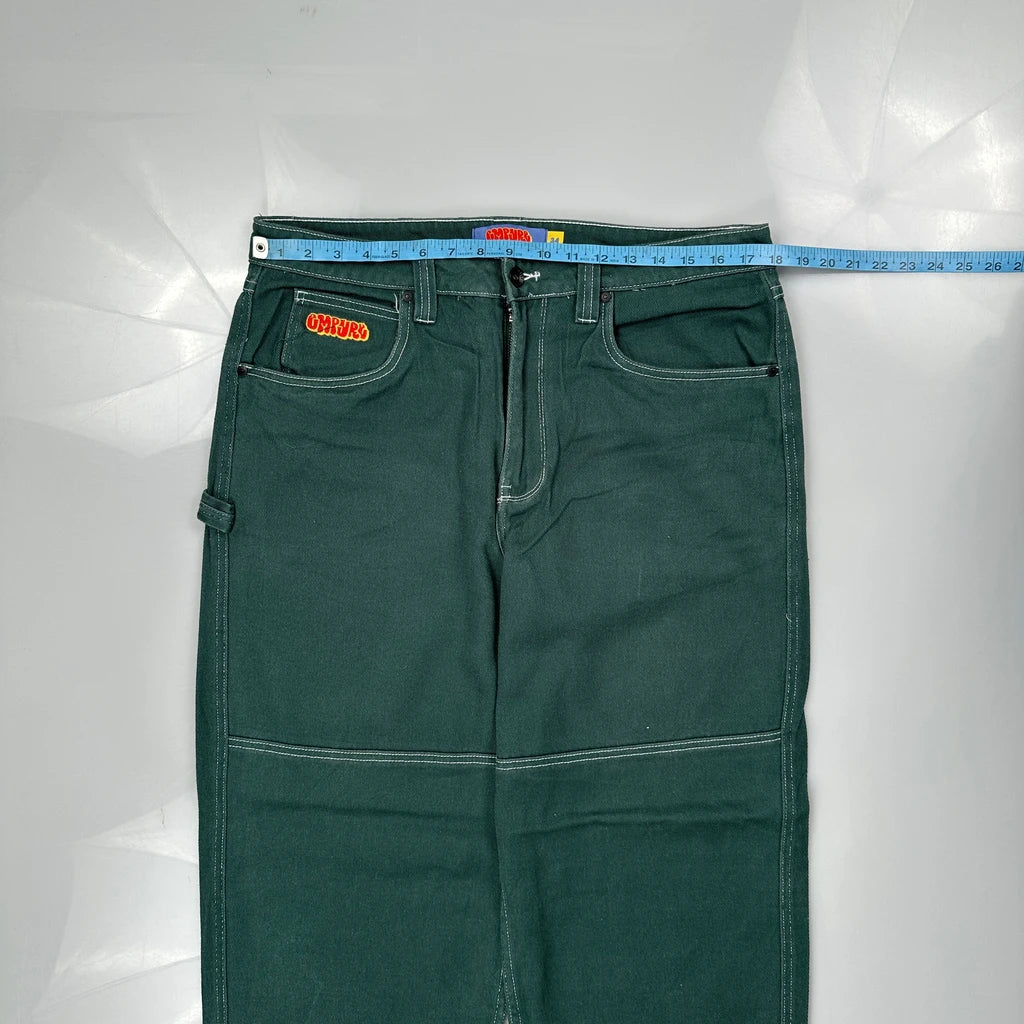 Hip Hop Empyre Double Knee Carpenter Trousers - 36W 30L Green Cotton