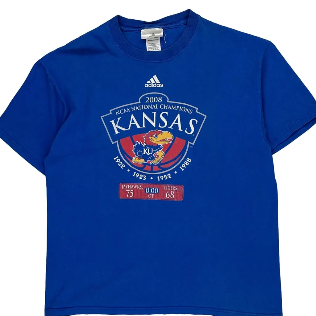 Kansas Jayhawks Adidas Graphic T-Shirt - Large Blue Cotton