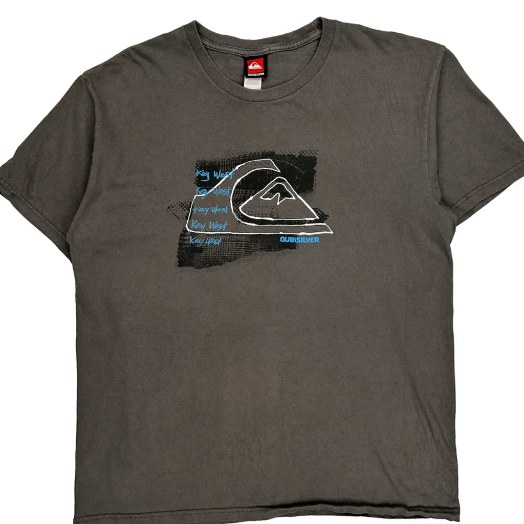 Key West Quiksilver Graphic T-Shirt - Large Grey Cotton