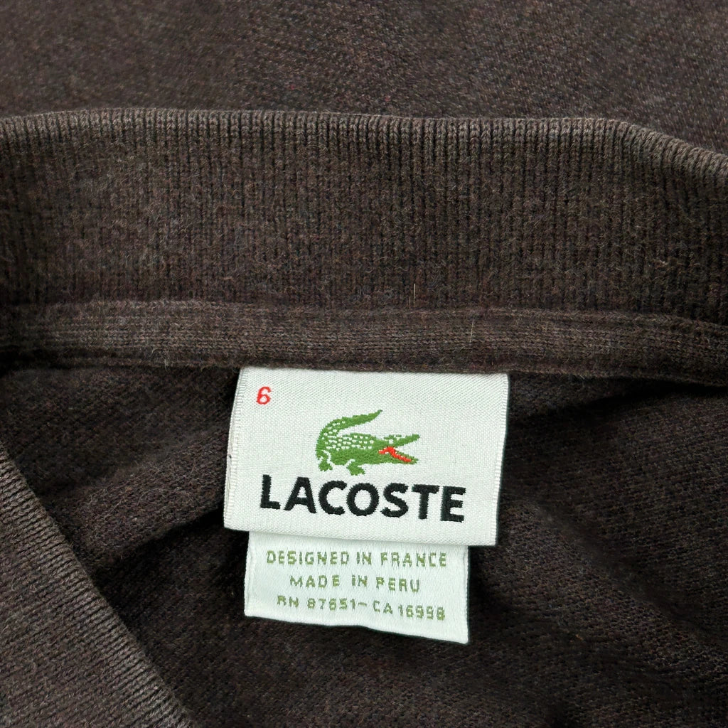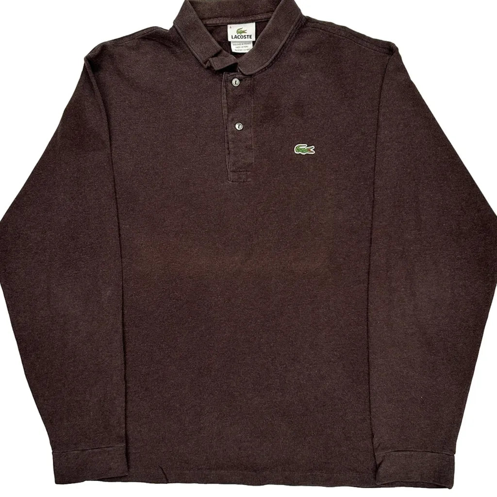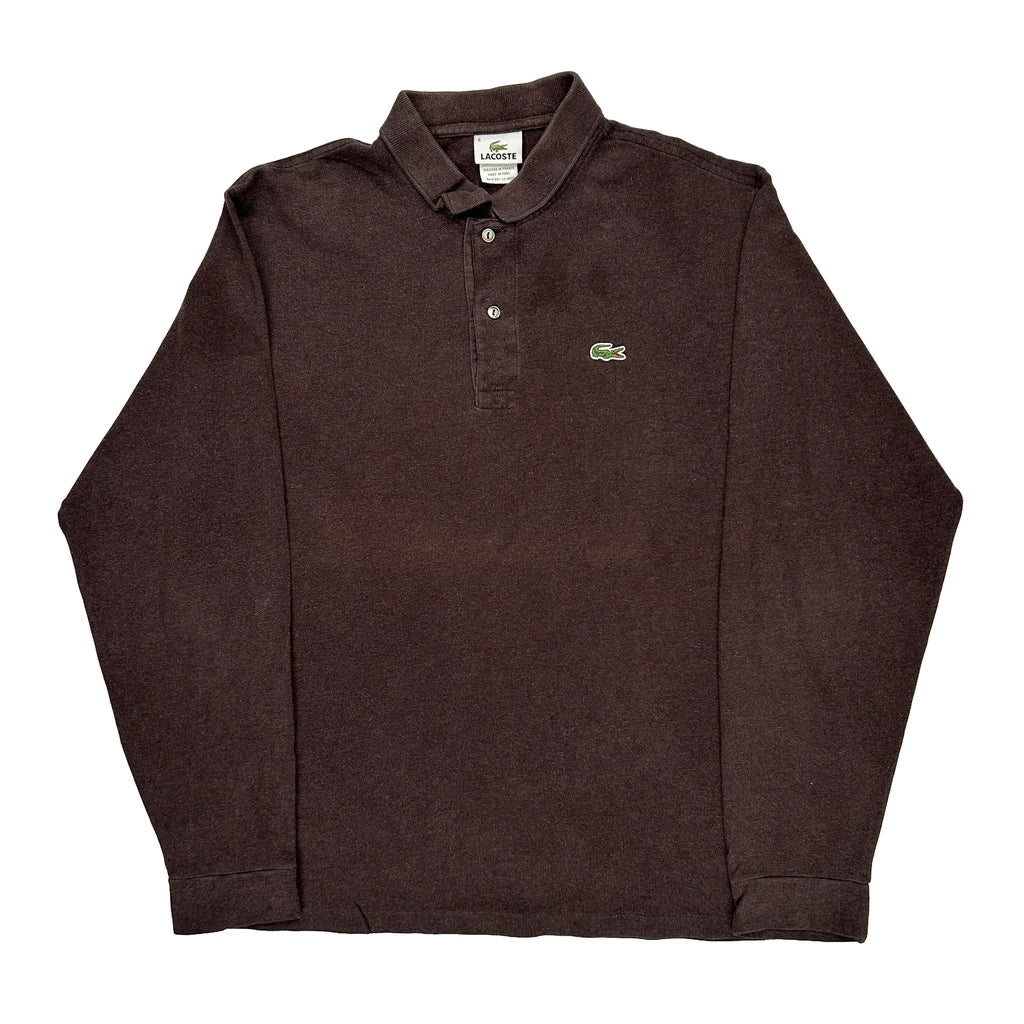 Lacoste Long Sleeve Polo Shirt - XL Brown Cotton