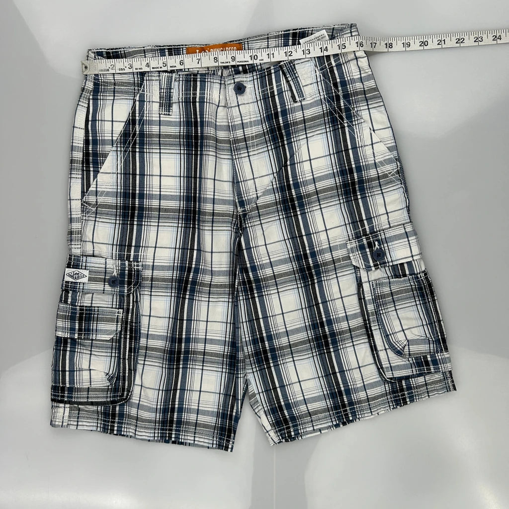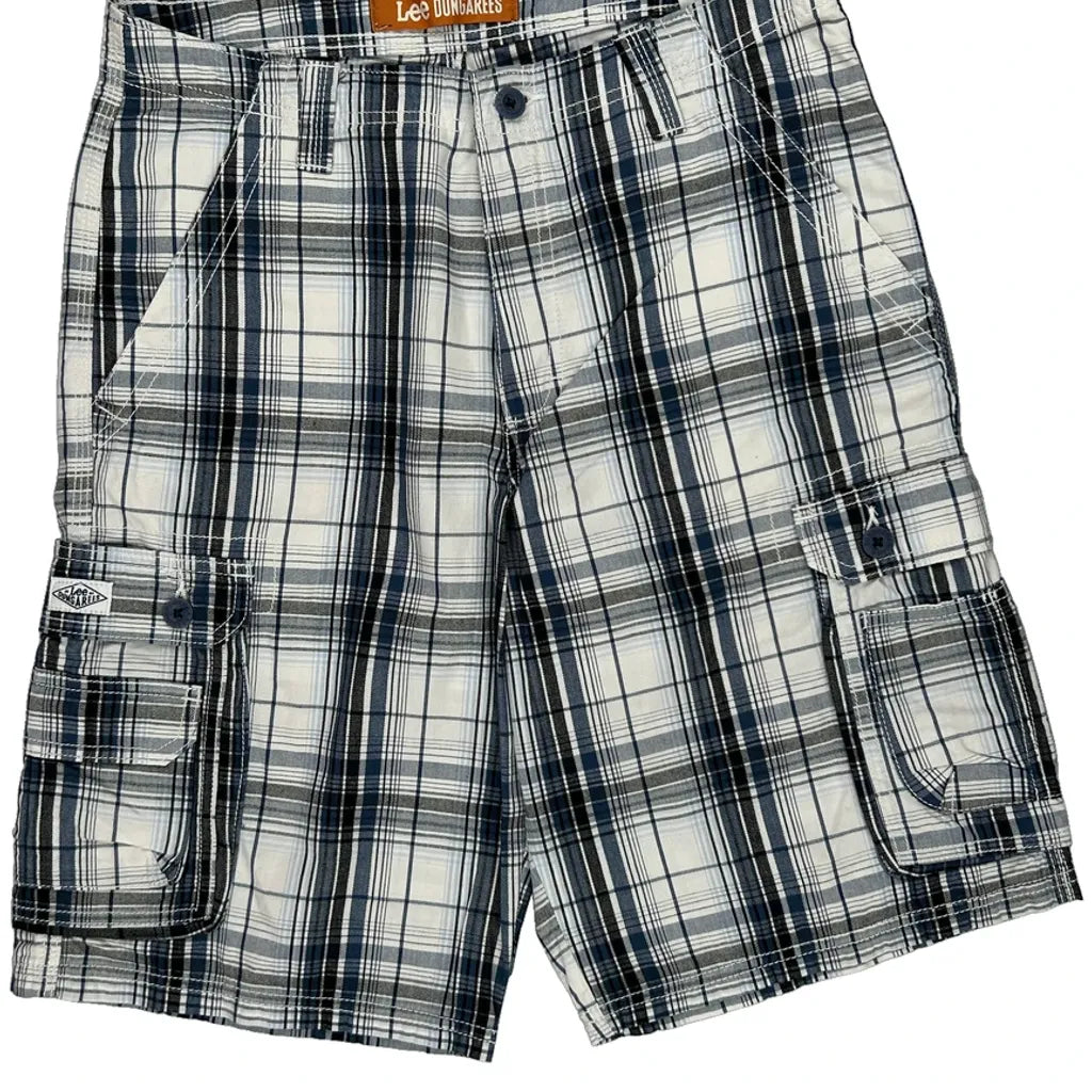 Lee Checked Cargo Shorts - 32W 11L Blue Cotton