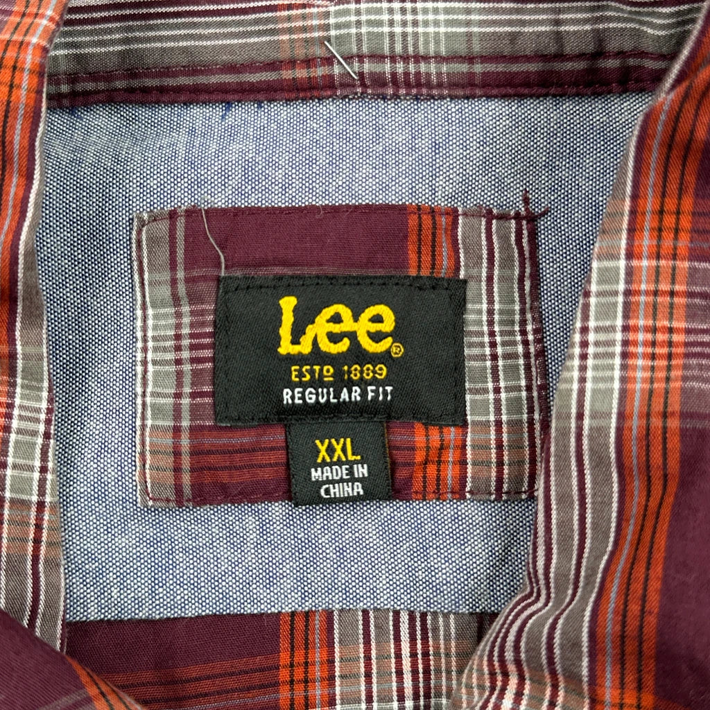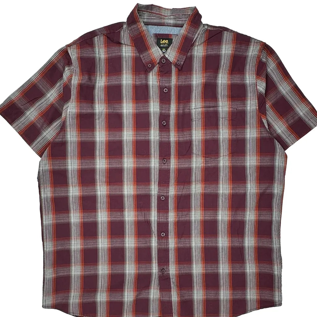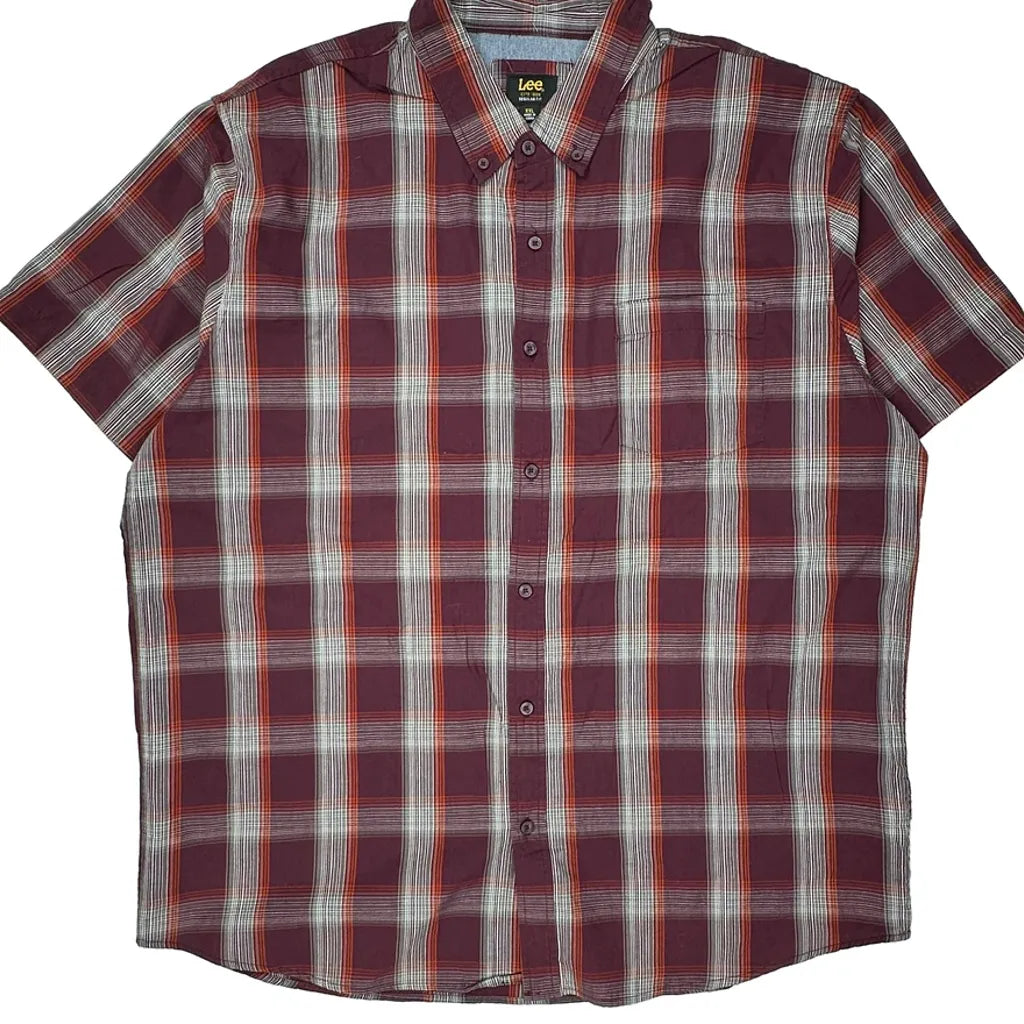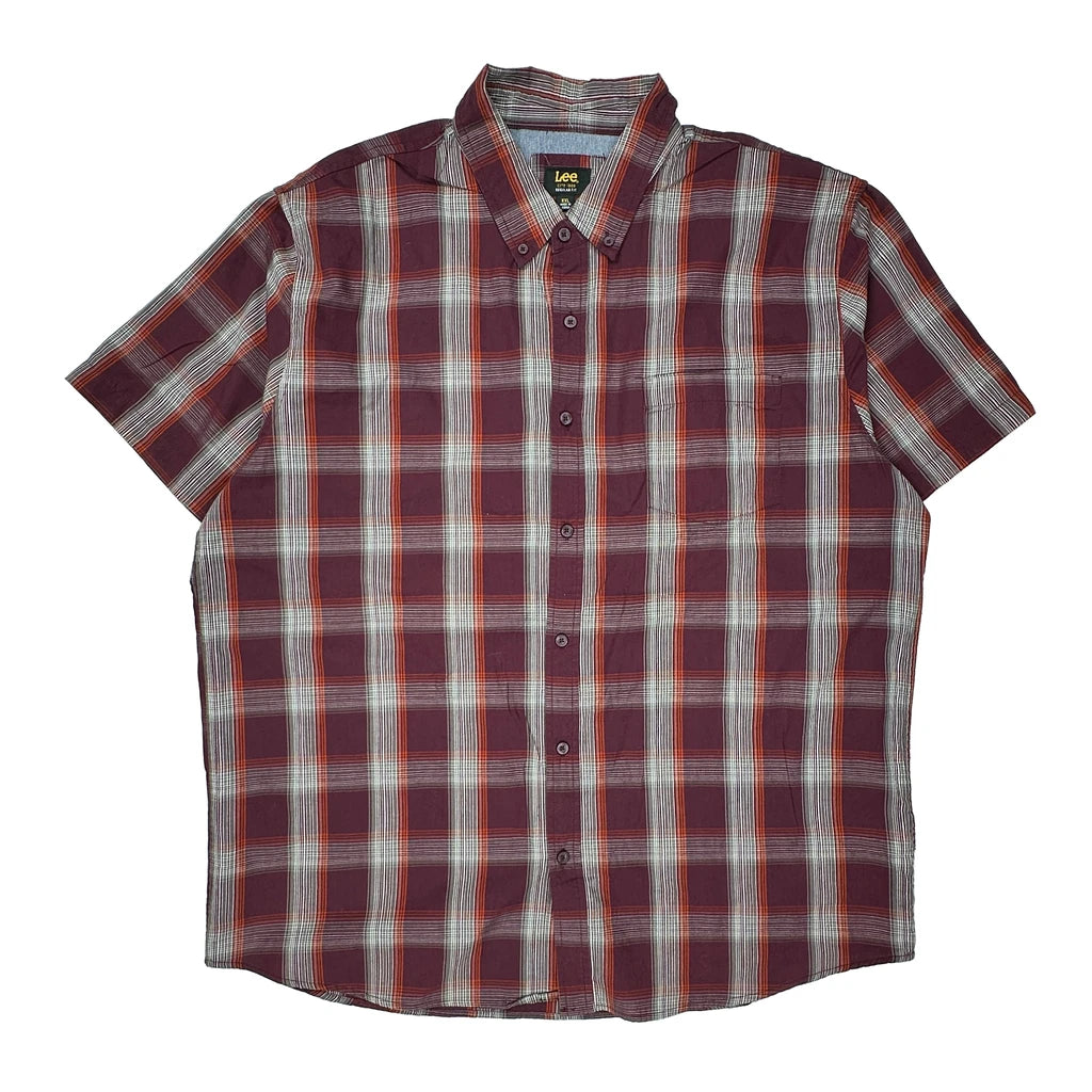Lee Checked Short Sleeve Shirt - 2XL Burgundy Cotton
