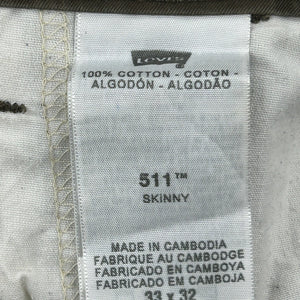 Levis 511 Skinny Cargo Trousers In Green, 33X32, Made In Cambodia