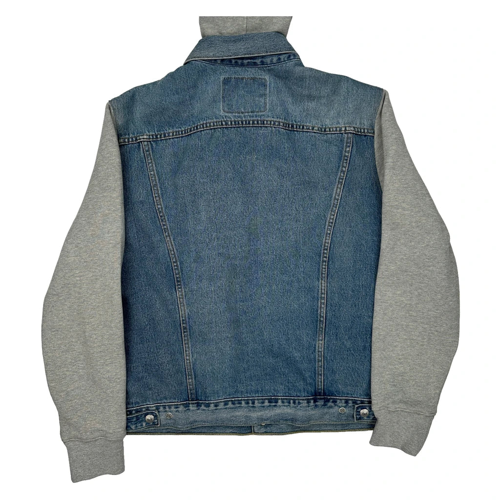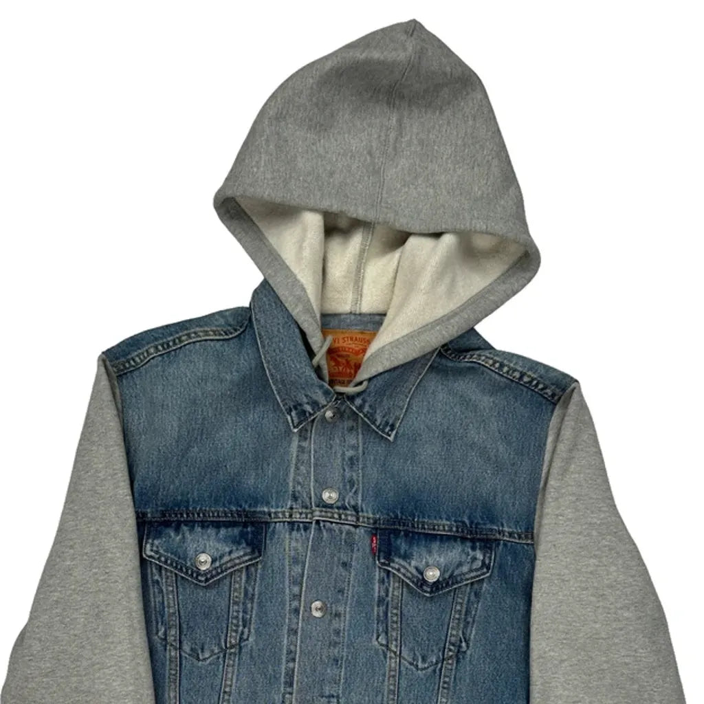 Denim Jacket With Grey Hood And Sleeves