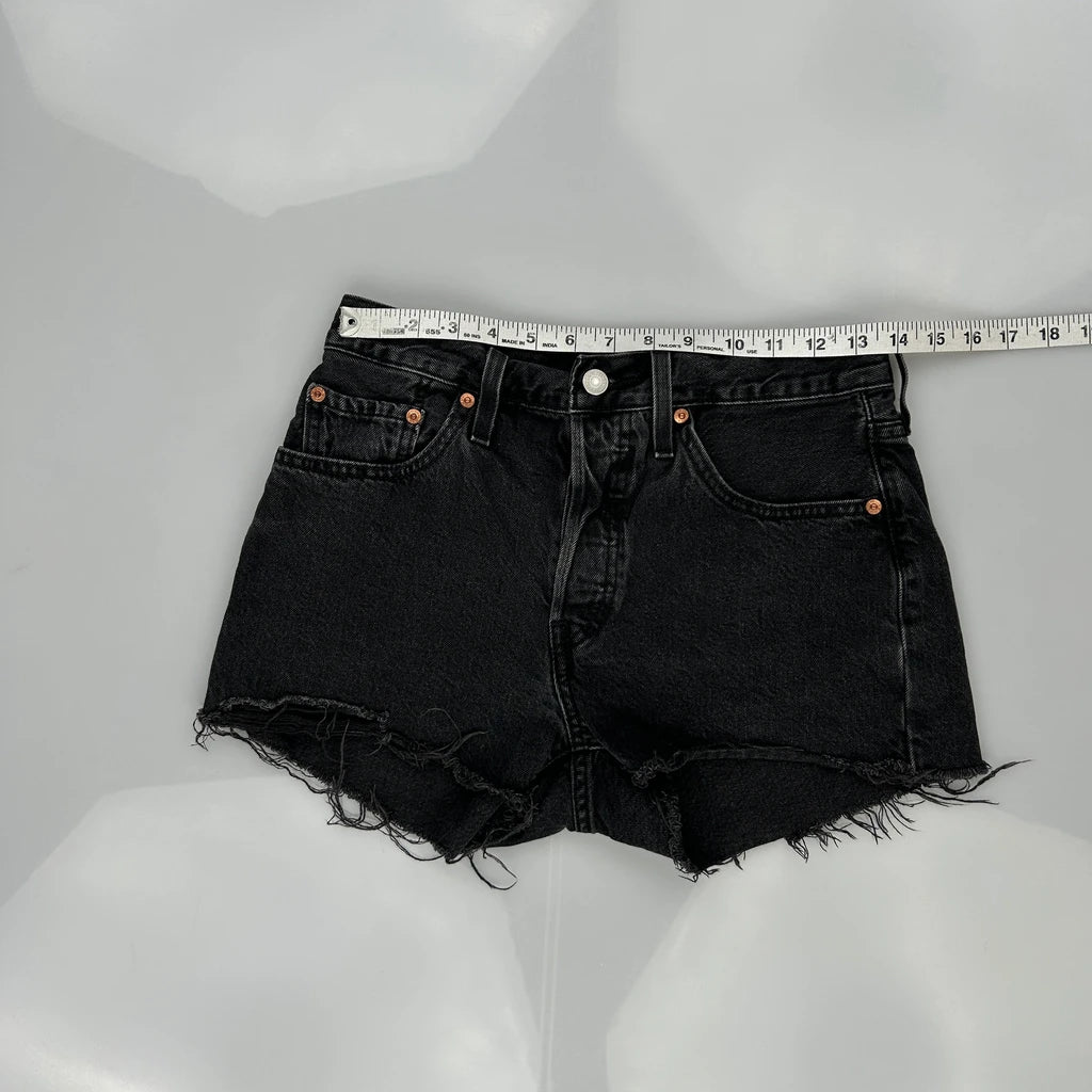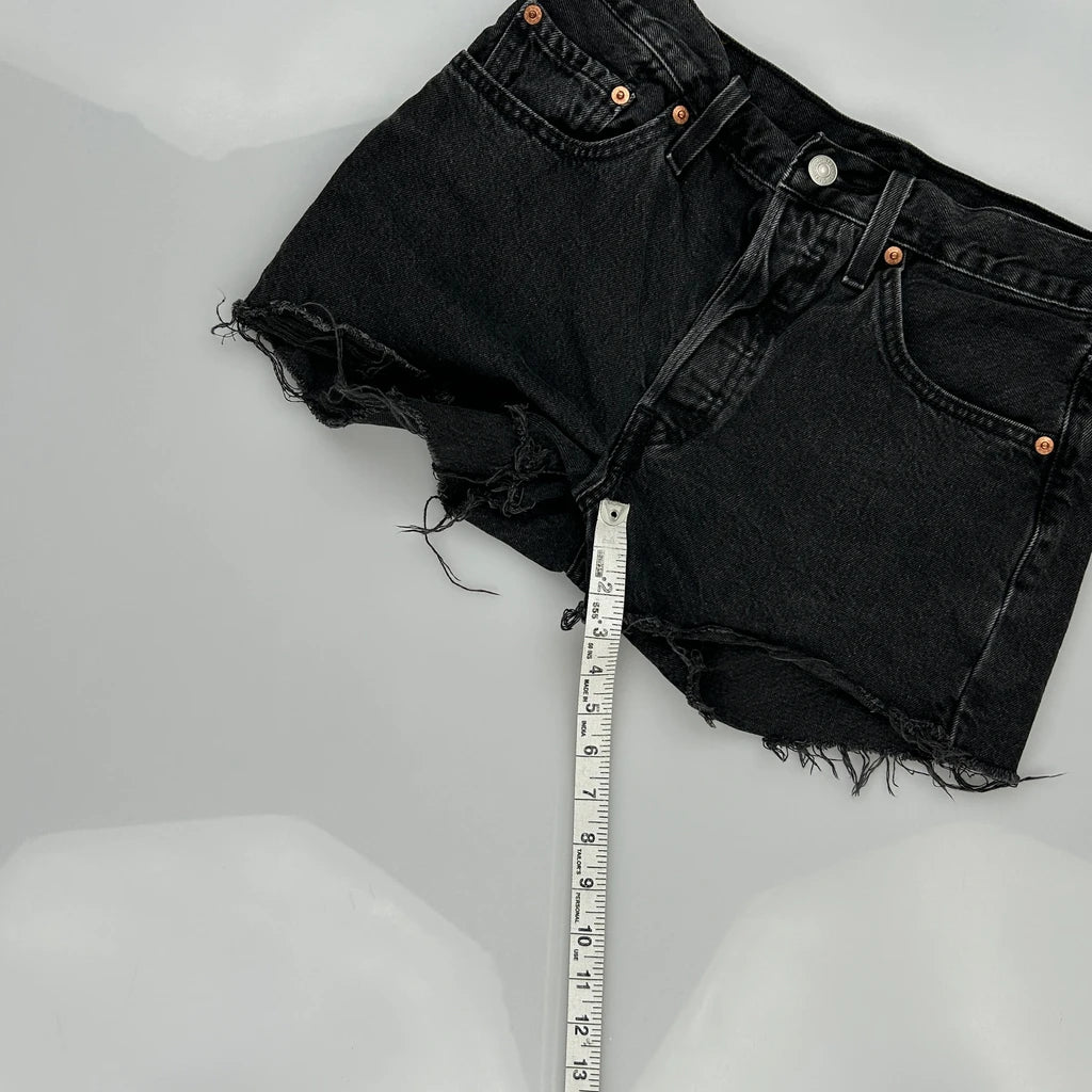 Levis Denim Shorts - 27W UK 8 Black Cotton