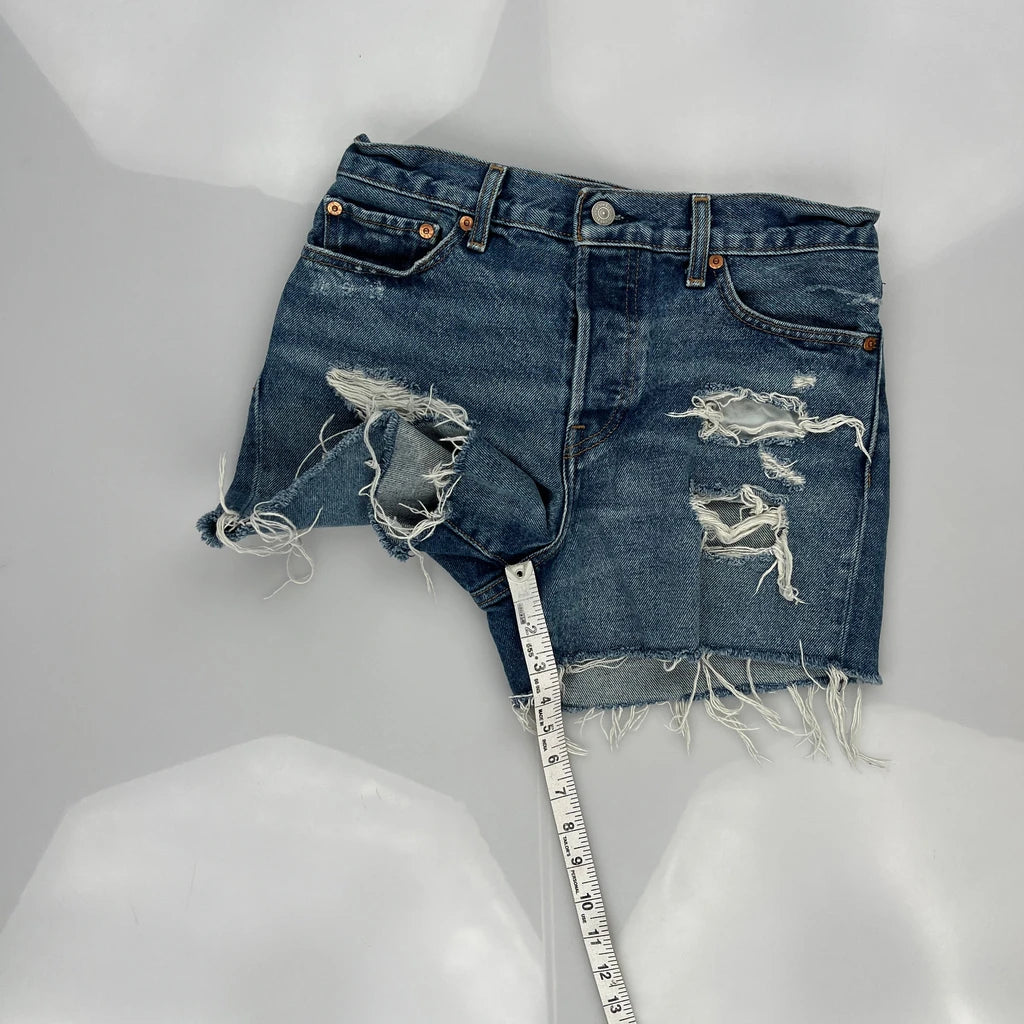 Levis Denim Shorts, fit a UK size 8 with a 28″ Waist.