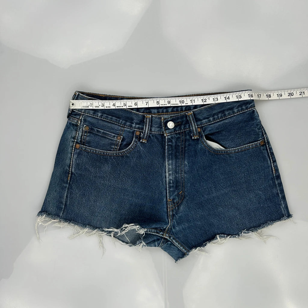 Levis Denim Shorts - 32W UK 12 Dark Wash Cotton