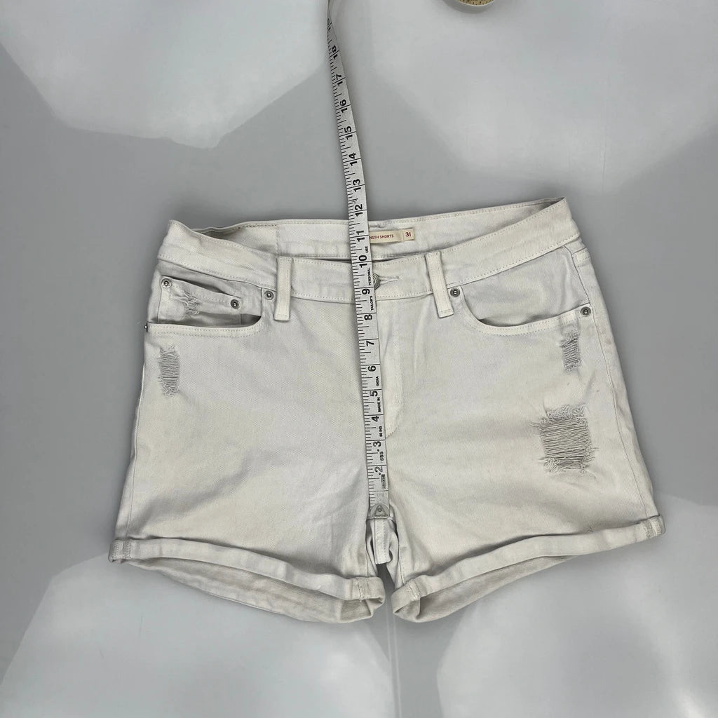 Levis Denim Shorts - 32W UK 12 White Cotton