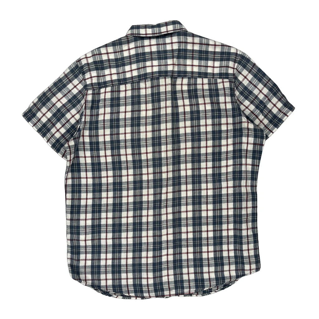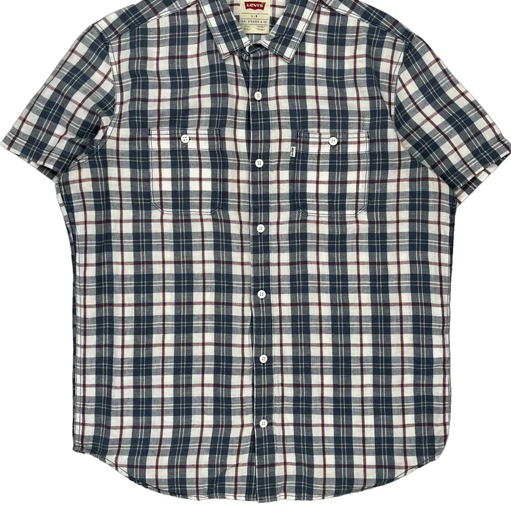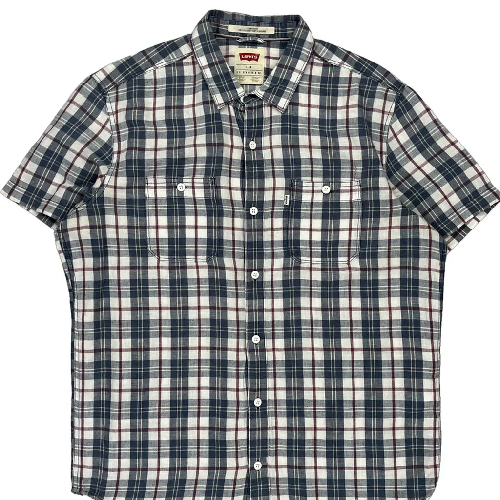 Levis Checked Short Sleeve Shirt - Large Blue Linen Blend