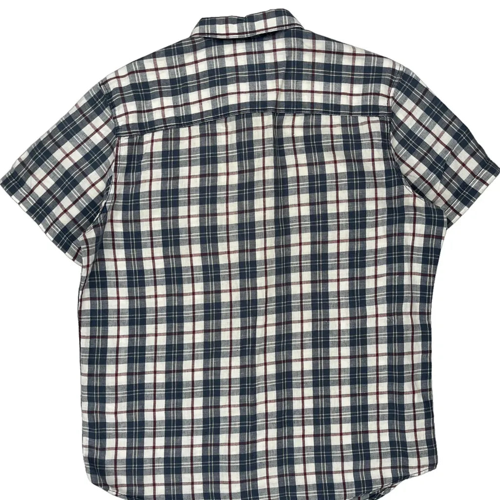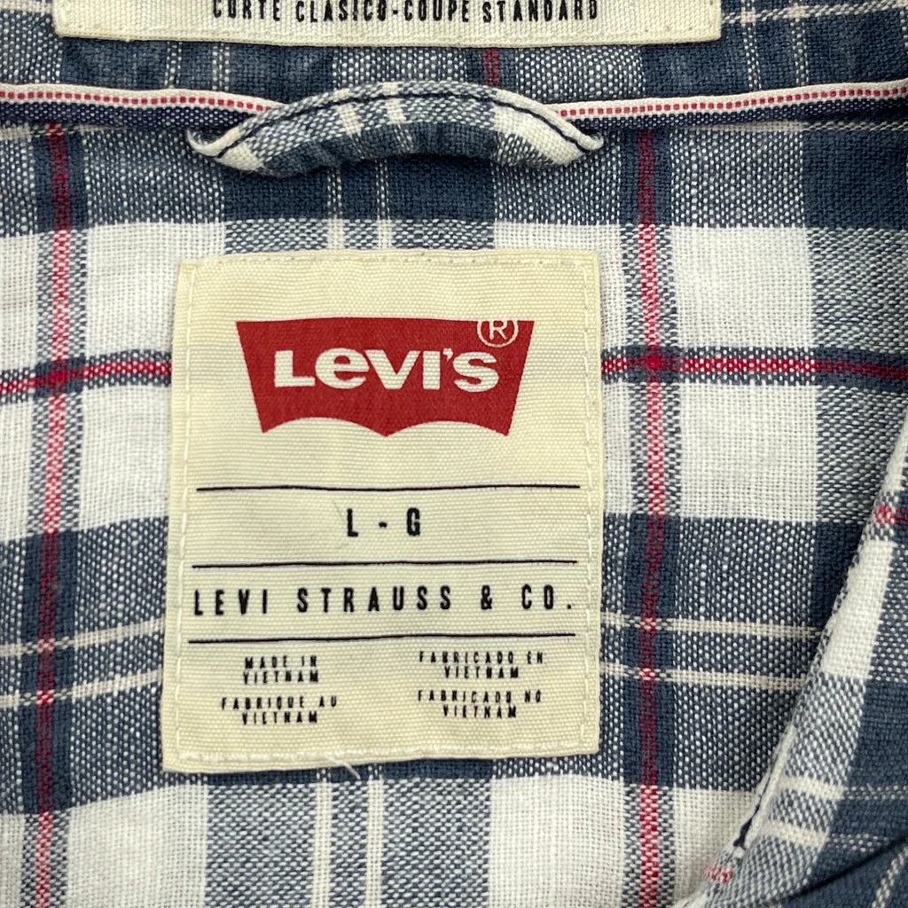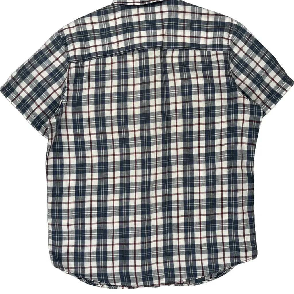 Levis Checked Short Sleeve Shirt - Large Blue Linen Blend