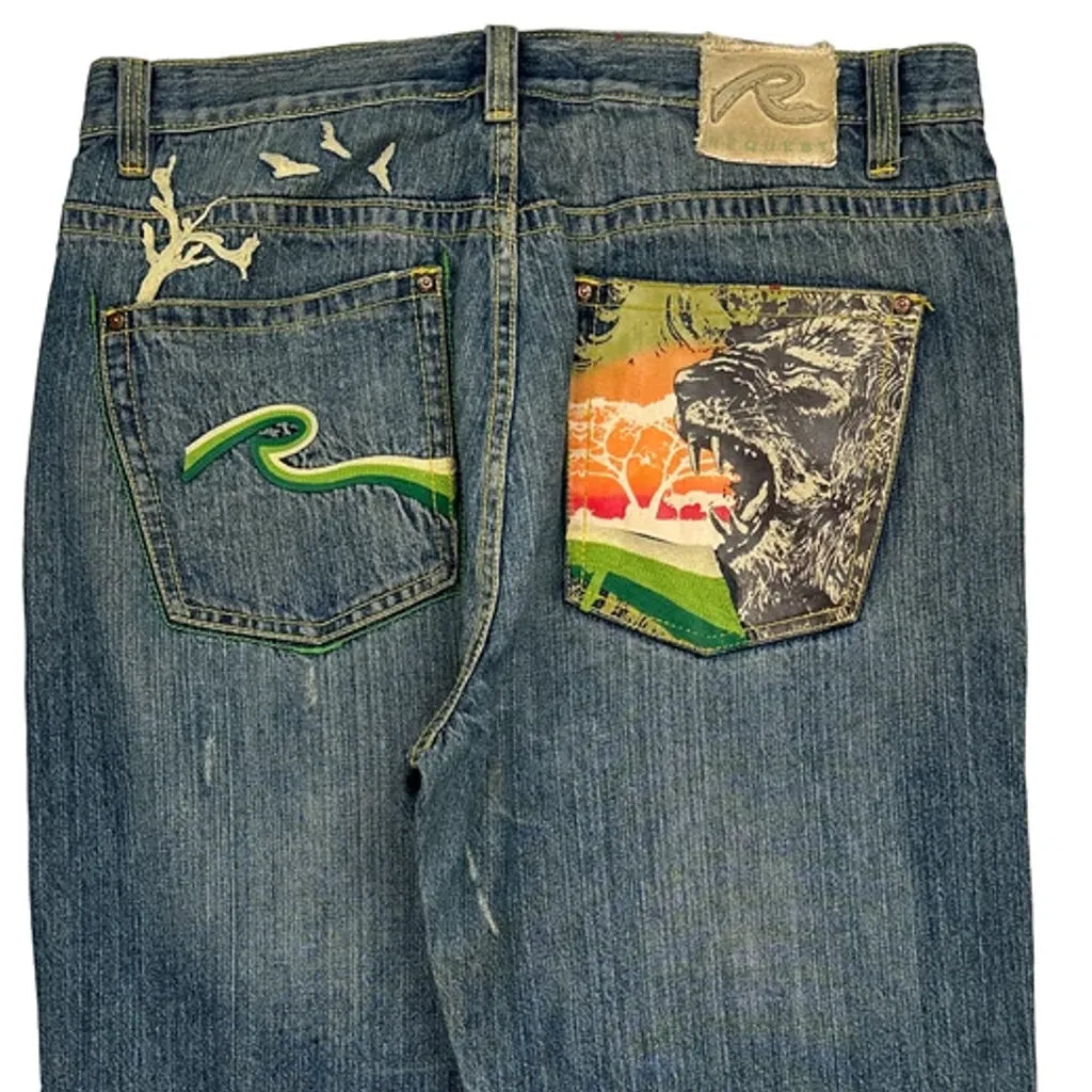 Lion Print Rocawear Graphic Jeans - 38W 31L Multicoloured Denim