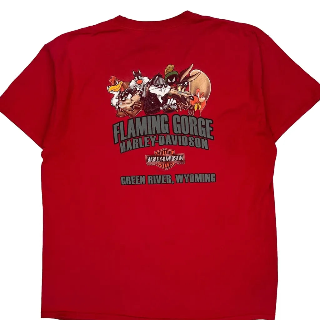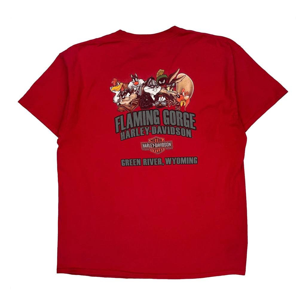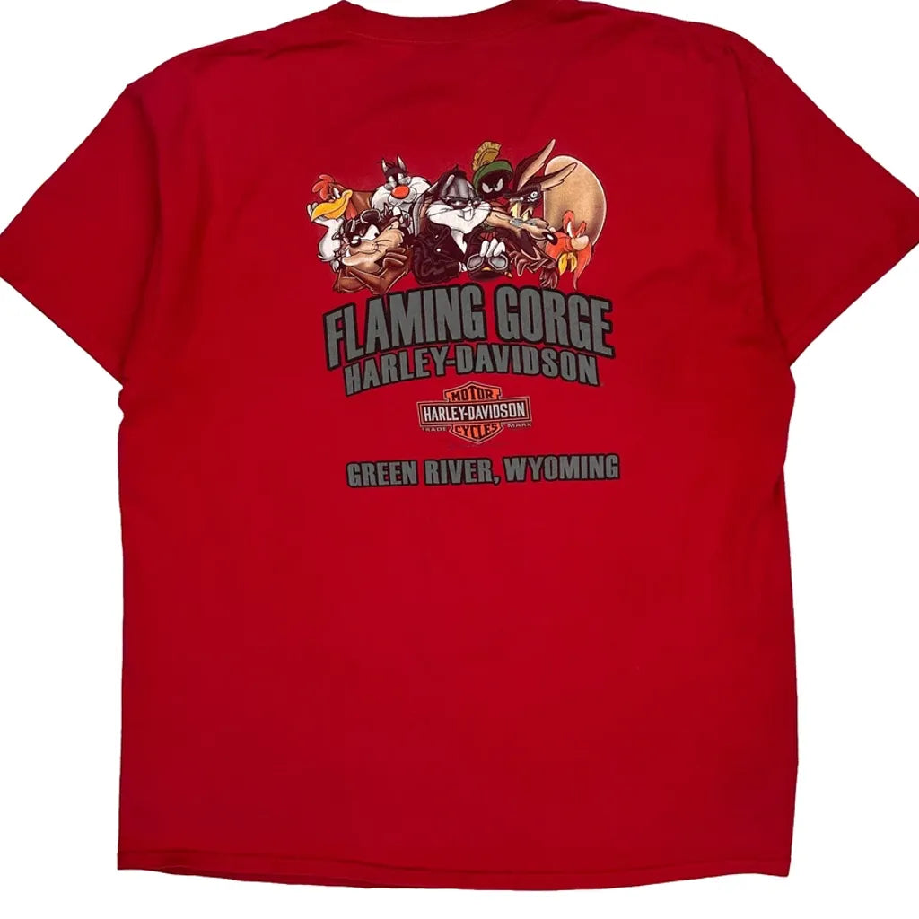 Looney Tunes Characters Harley Davidson Cartoon T-Shirt - XL Red Cotton