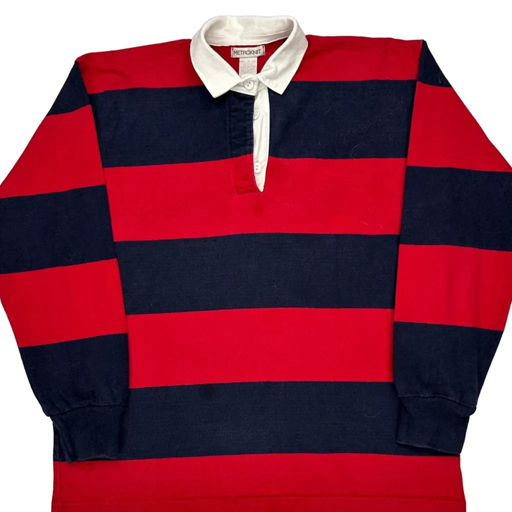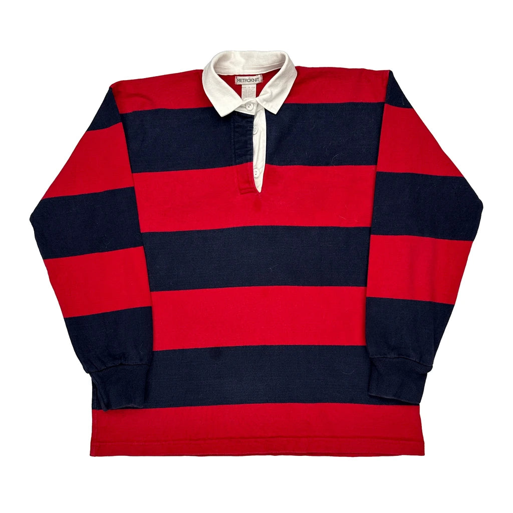 Red And Navy Striped Rugby Shirt With White Collar