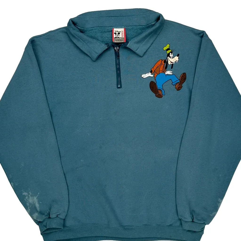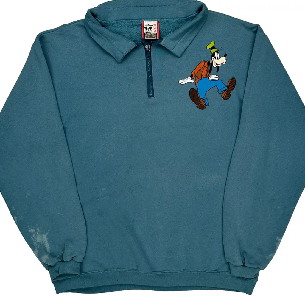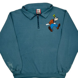 Made In USA. Goofy Disney Cartoon 1/4 Zip - XL Blue Cotton Blend