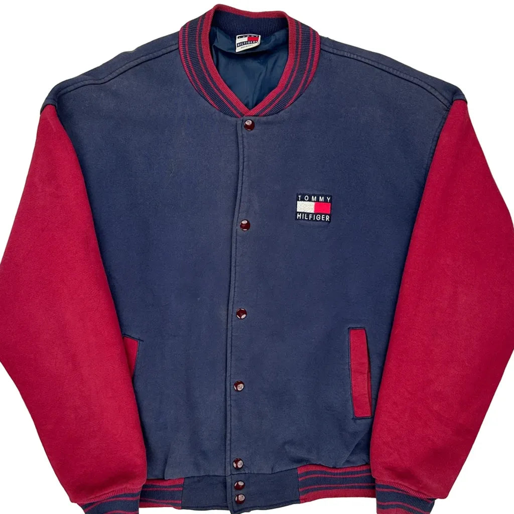 Made In USA Tommy Hilfiger Varsity Jacket - 2XL Navy Cotton