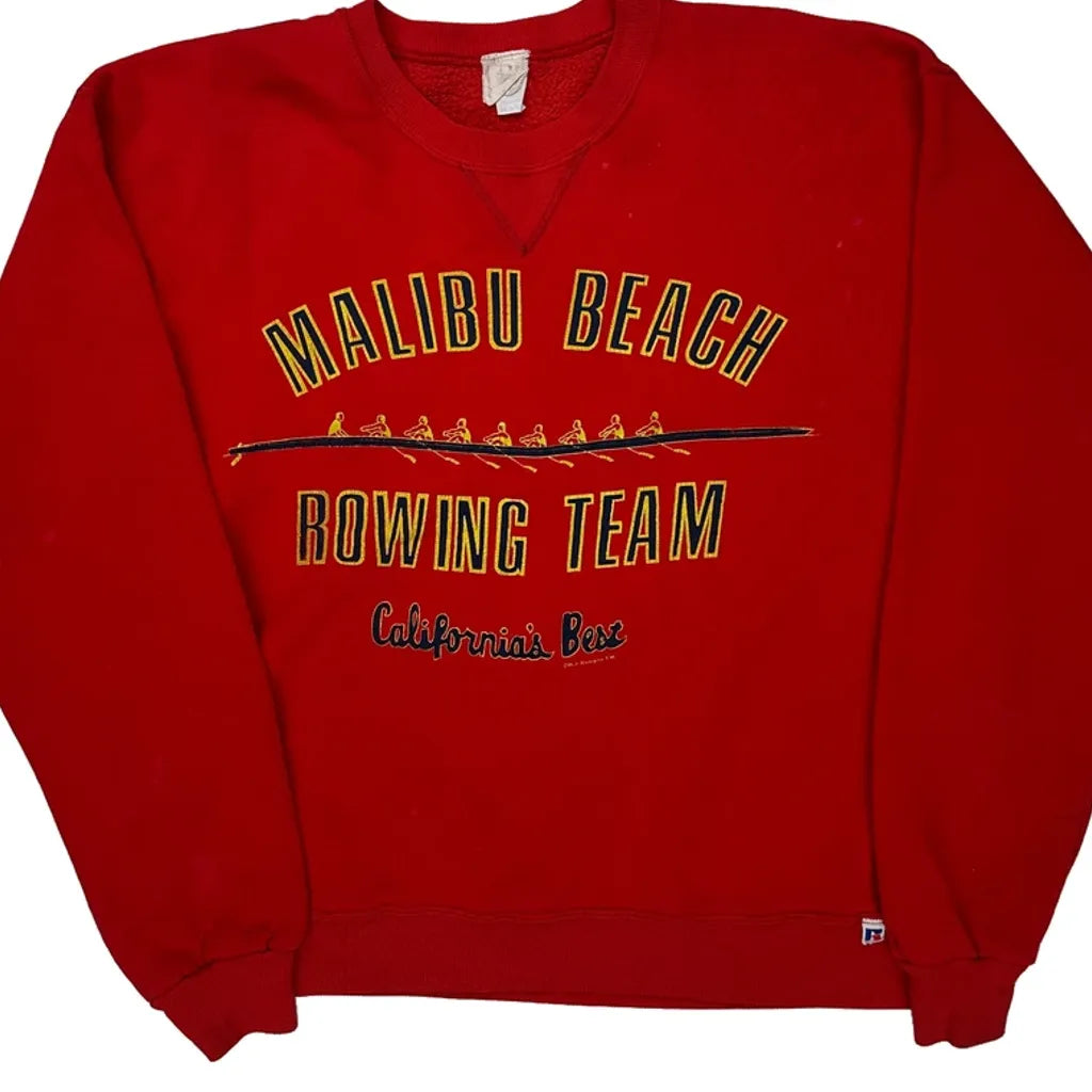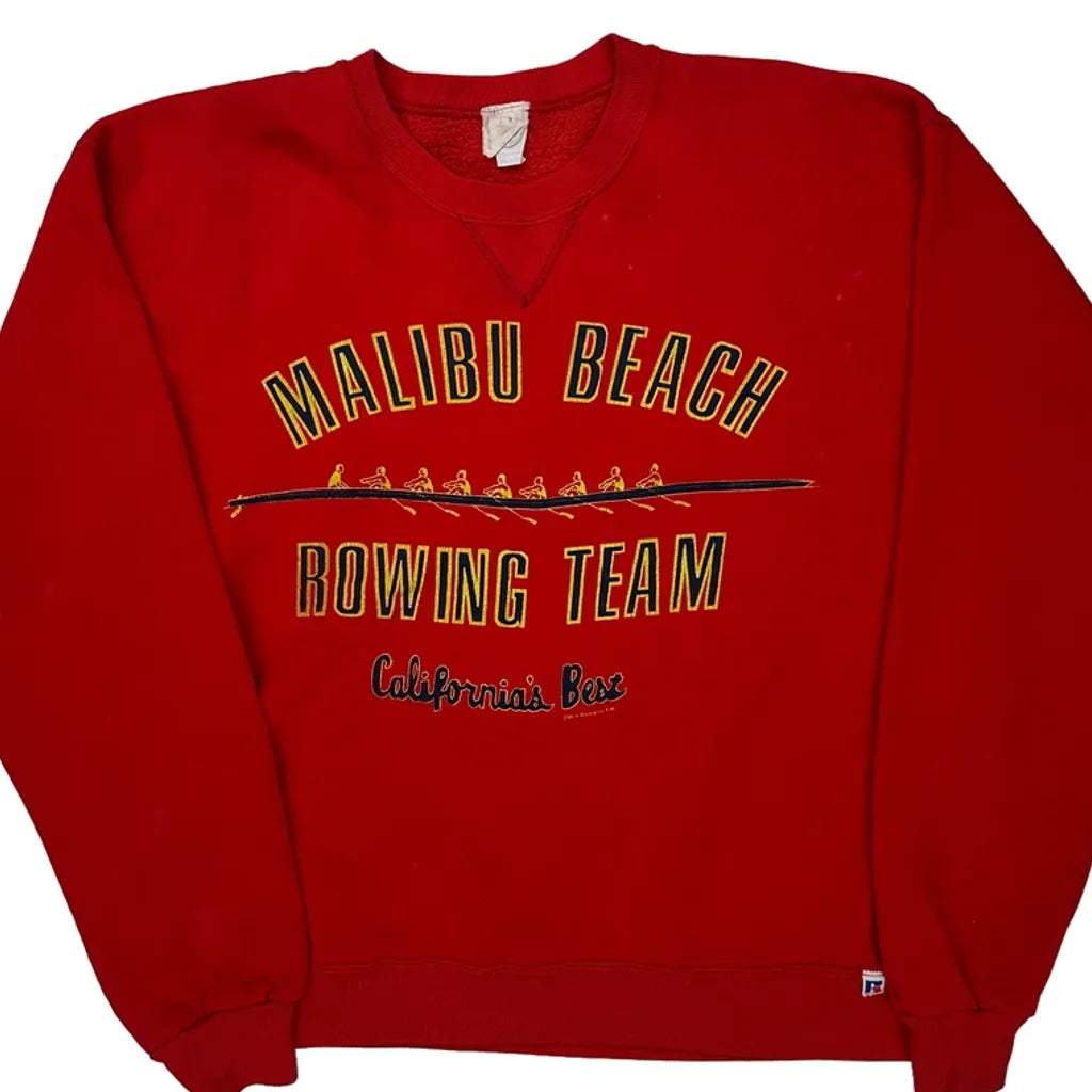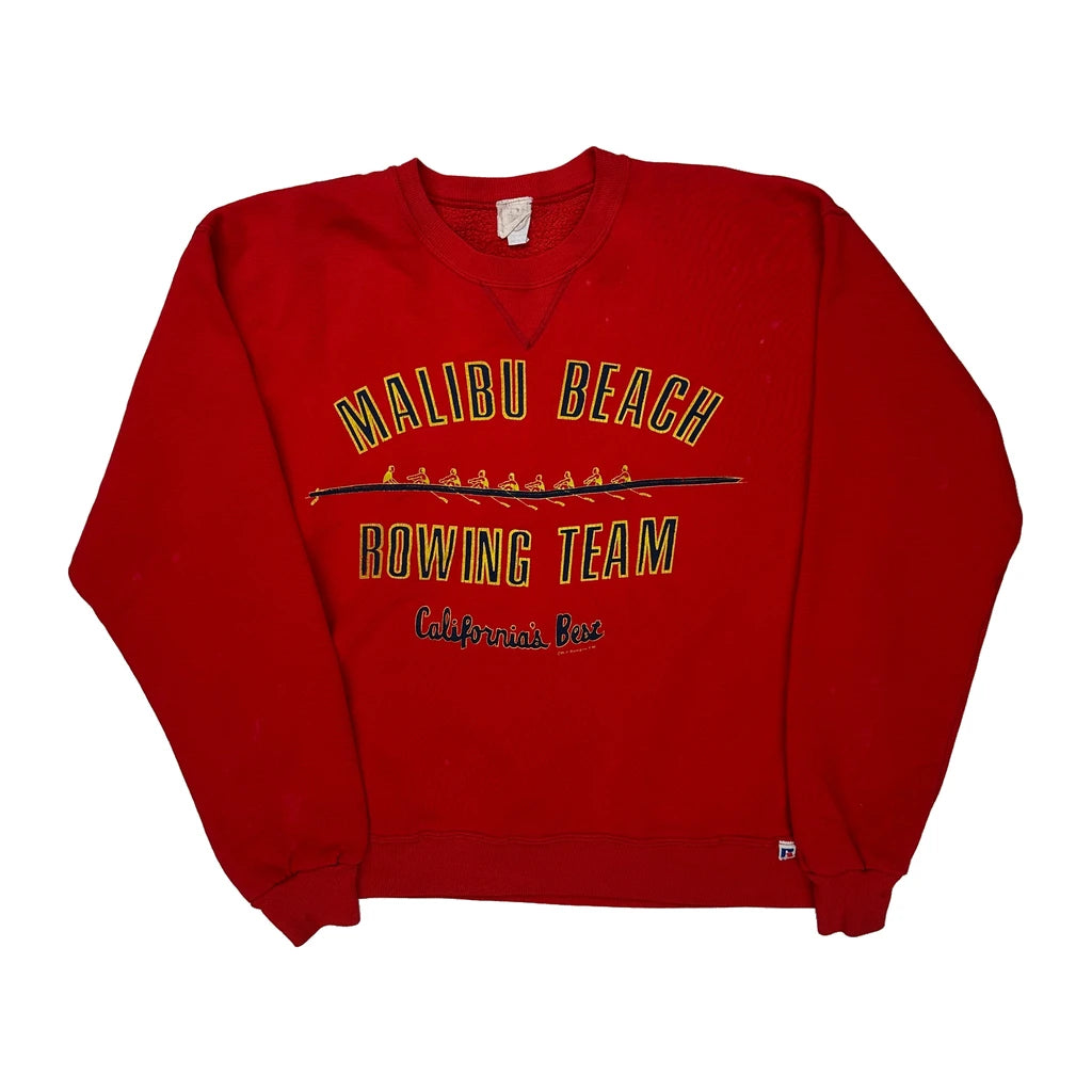 Malibu Beach Rowing Team Fruit Of The Loom Graphic Sweatshirt - Medium Red Cotton