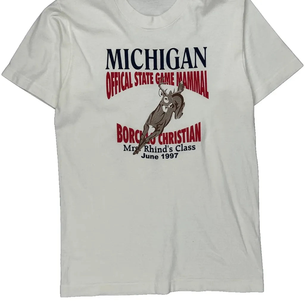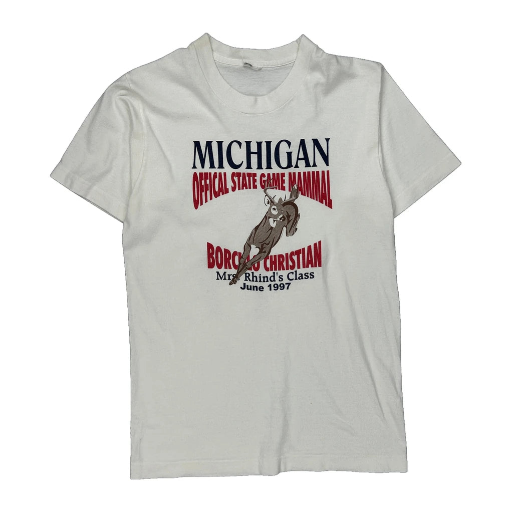 Michigan Official State Game Mammal Unbranded Single Stitch T-Shirt - Medium White Cotton