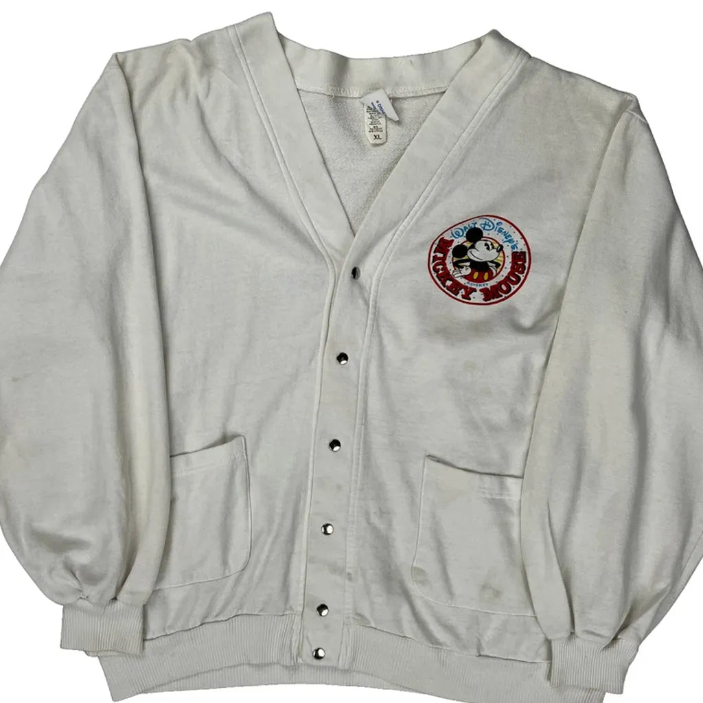 Mickey Mouse Disney Cartoon Sweatshirt - XL White Cotton Blend