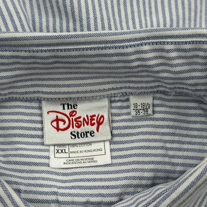 Mickey Mouse Logo Disney Striped Shirt - 2XL Blue Cotton