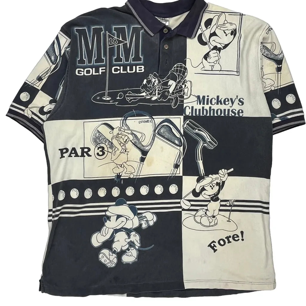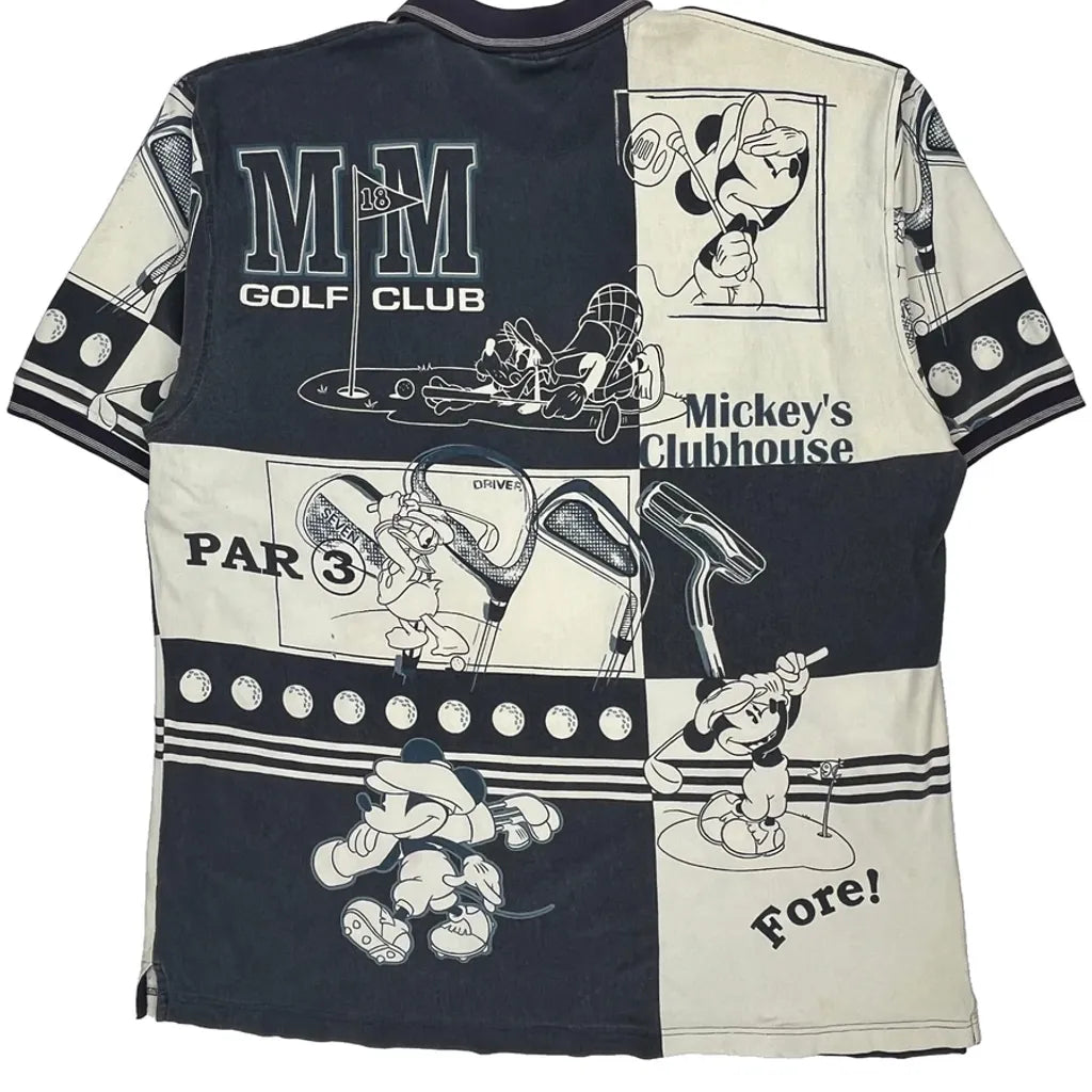 Mickey'S Clubhouse Disney Cartoon Polo Shirt - 2XL Black & White Cotton