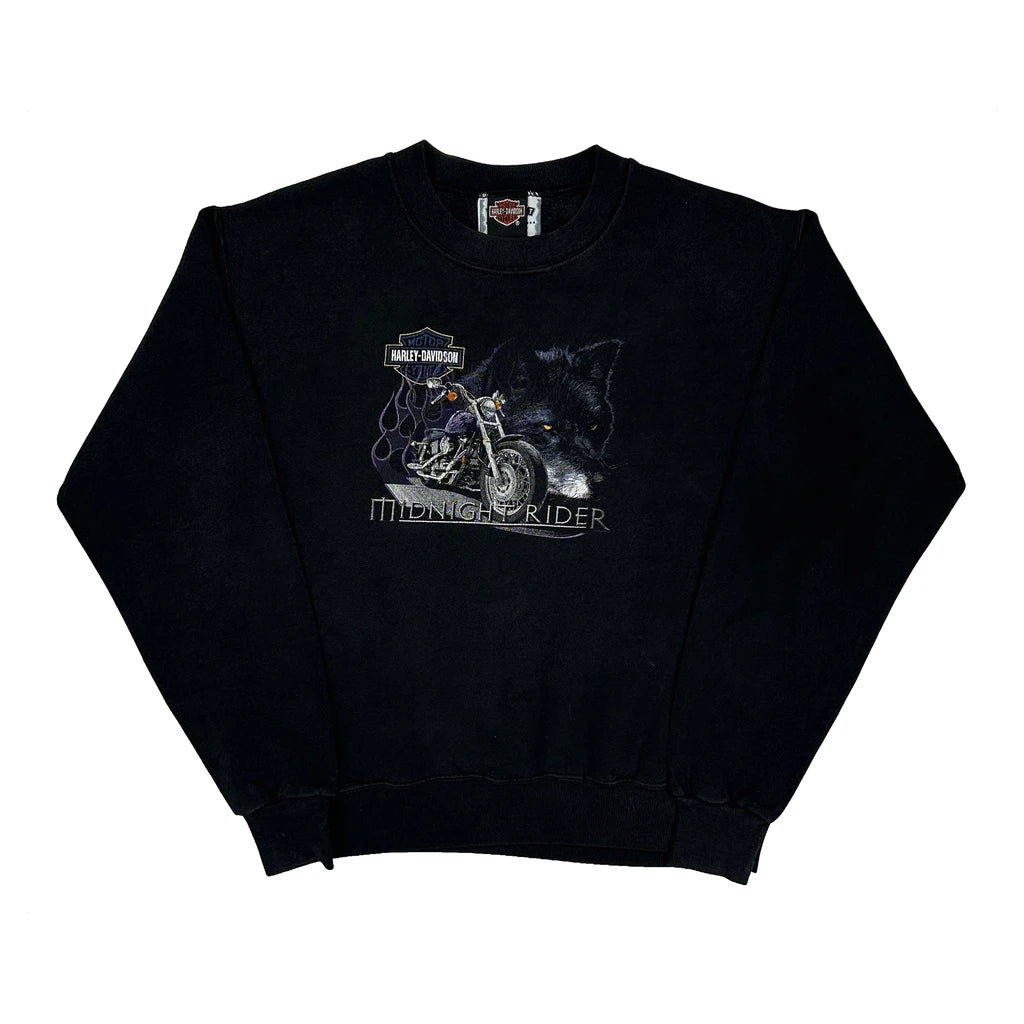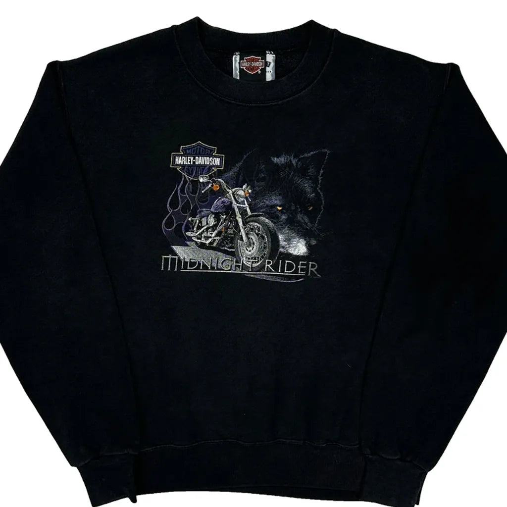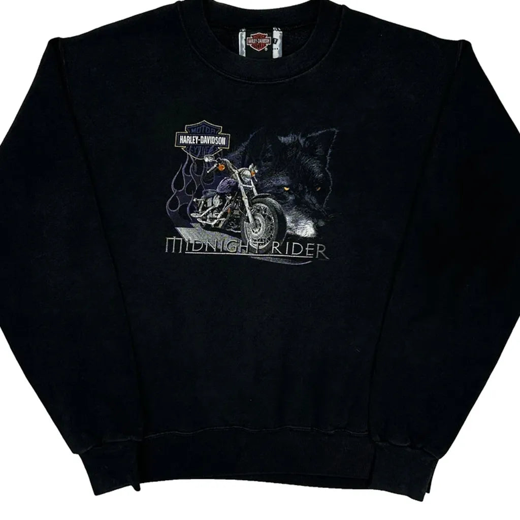Midnight Rider Harley Davidson Graphic Sweatshirt - Large Black Cotton