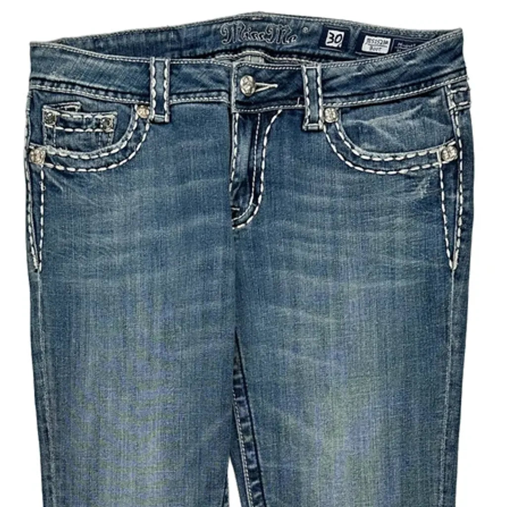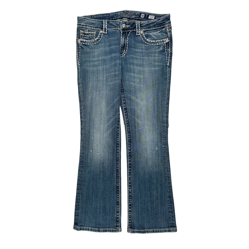 Miss Me Boot Cut Jeans - 32W UK 10 Blue Cotton