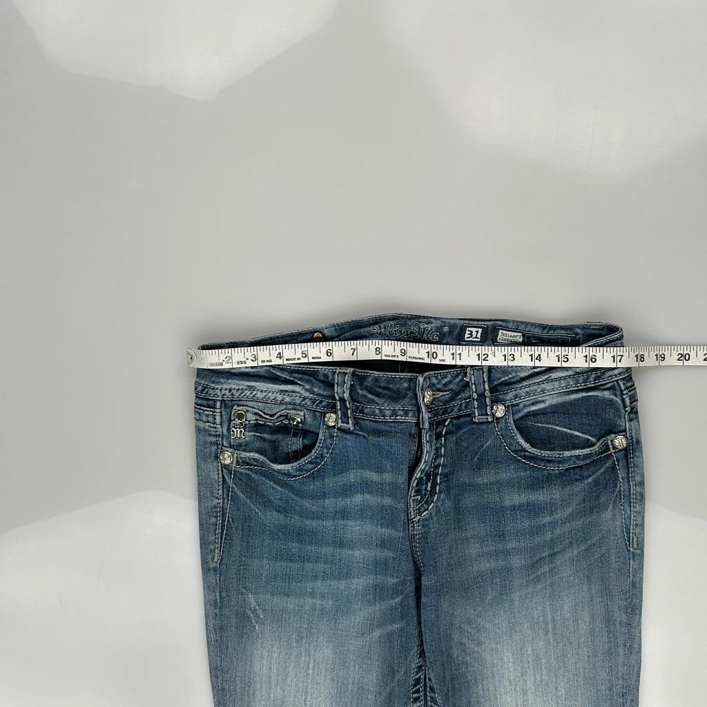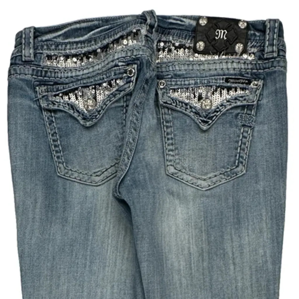 Miss Me Boot Cut Jeans - 33W UK 12 Light Wash Cotton Blend