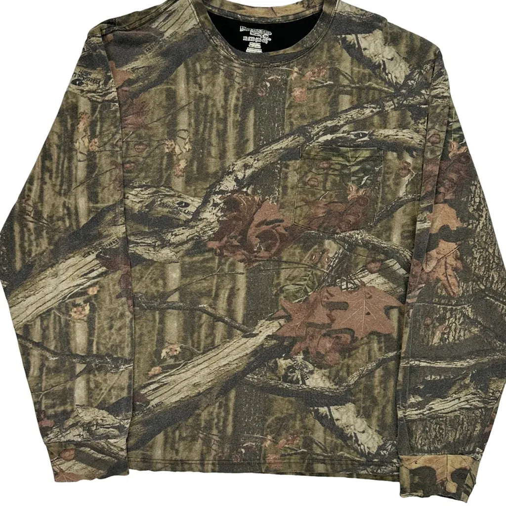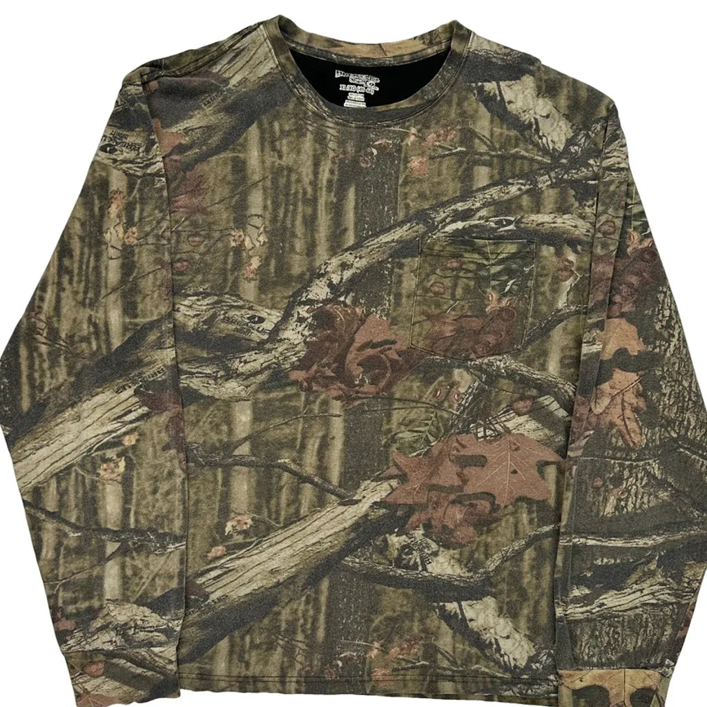 Mossy Oak Camo Long Sleeve T-Shirt - XL Camo Cotton
