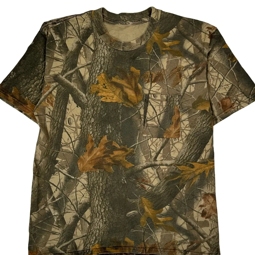 Mossy Oak Camo T-Shirt - Medium Khaki Cotton