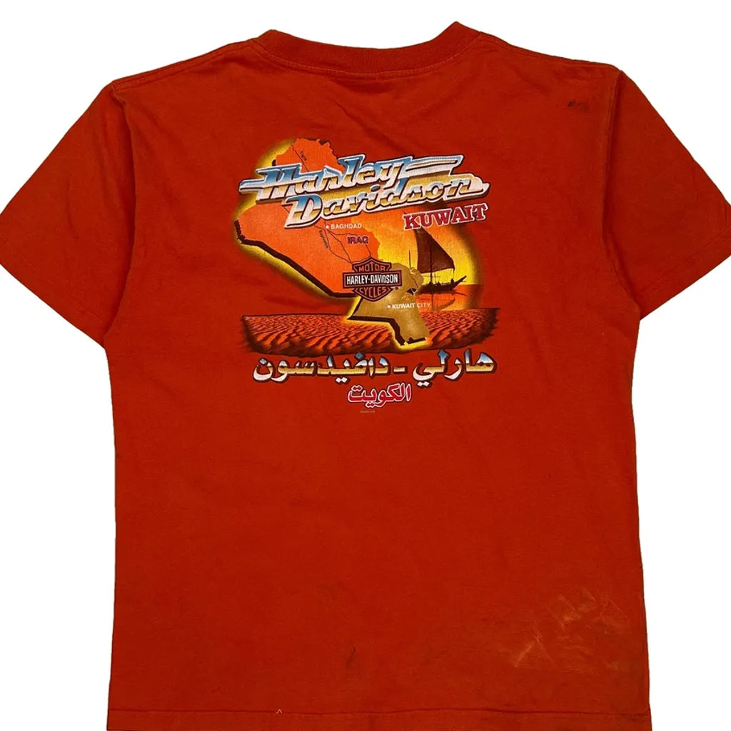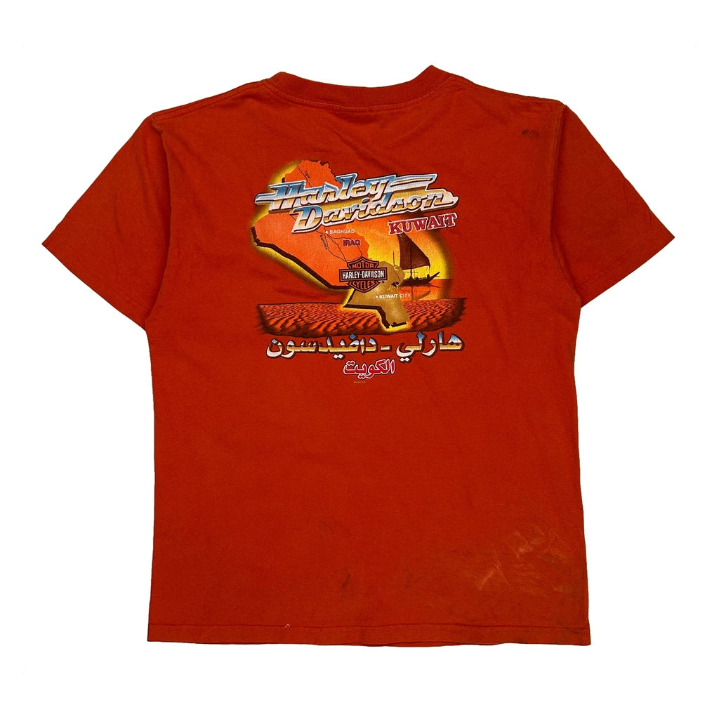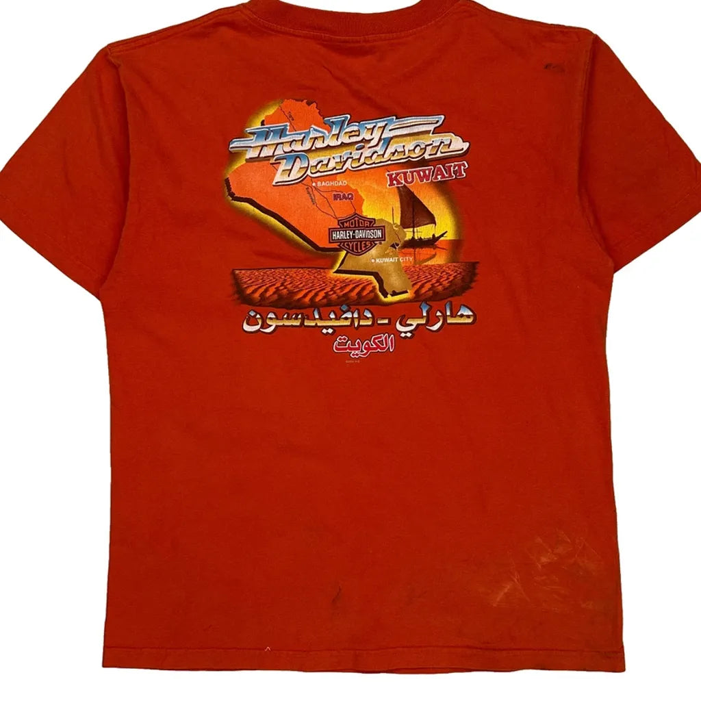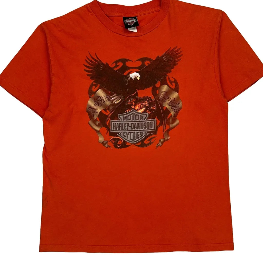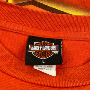 Motorcycle Harley Davidson Graphic T-Shirt - Large Orange Cotton