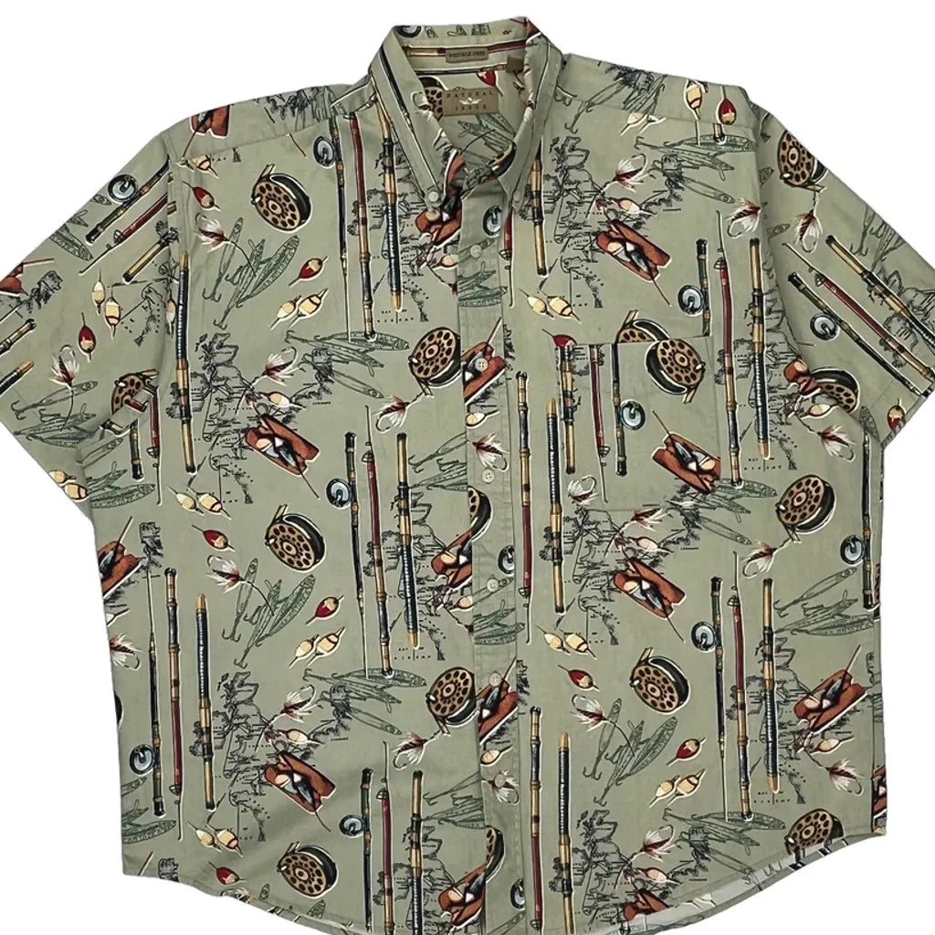 Natural Issue Graphic Hawaiian Shirt - XL Green Cotton