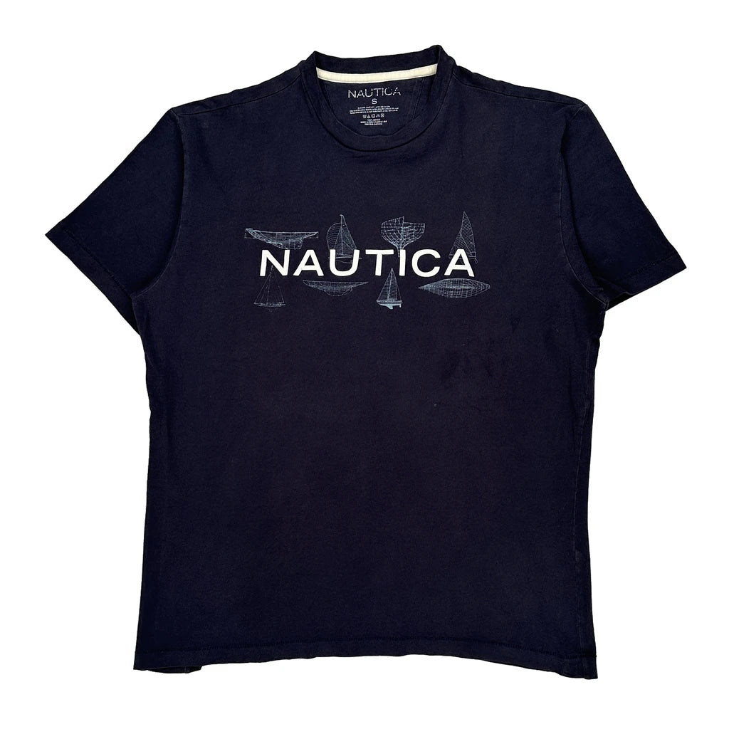 Nautica Spellout T-Shirt - Small Navy Cotton