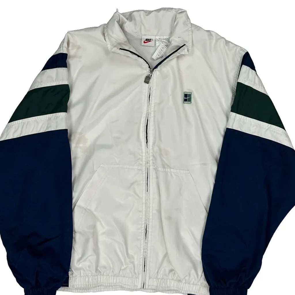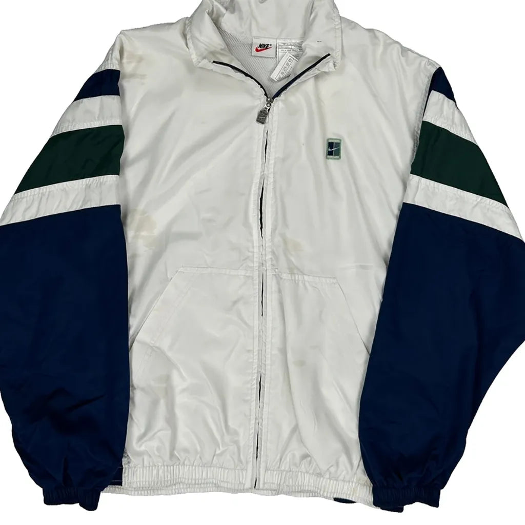 Nike Striped Windbreaker - Large Green Polyester