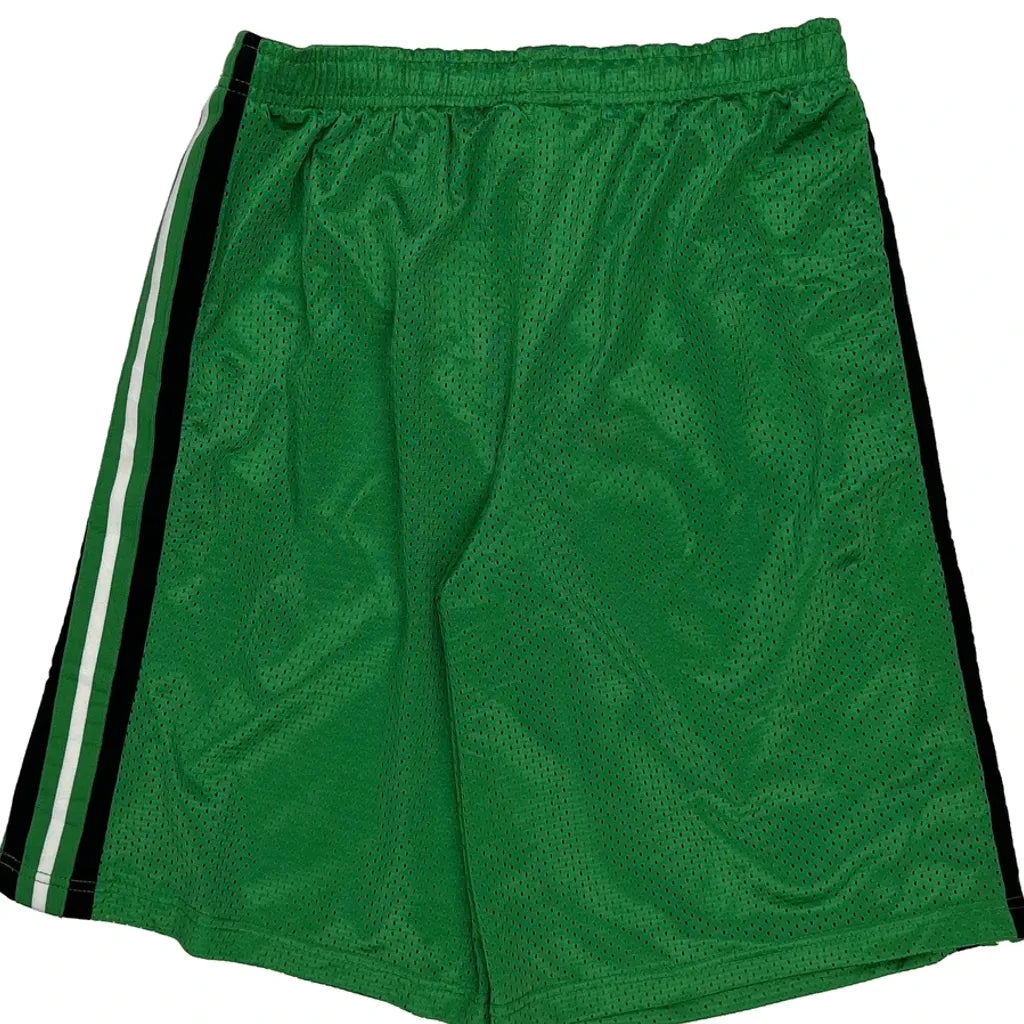 Green Sport Shorts With Black And White Side Stripes