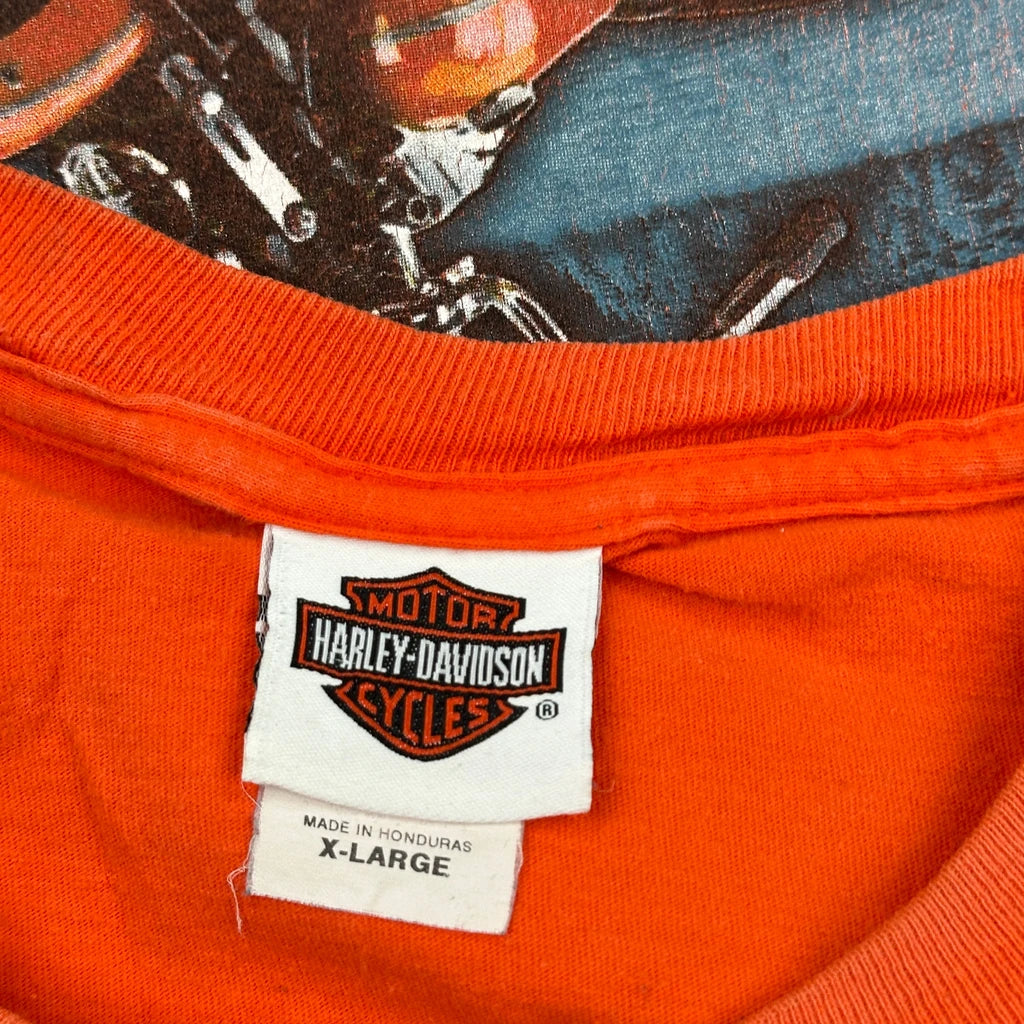 Northwoods Harley Davidson Graphic T-Shirt - XL Orange Cotton