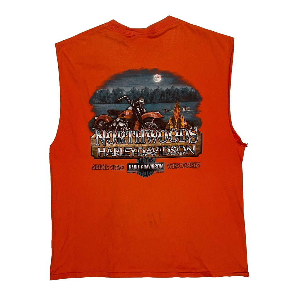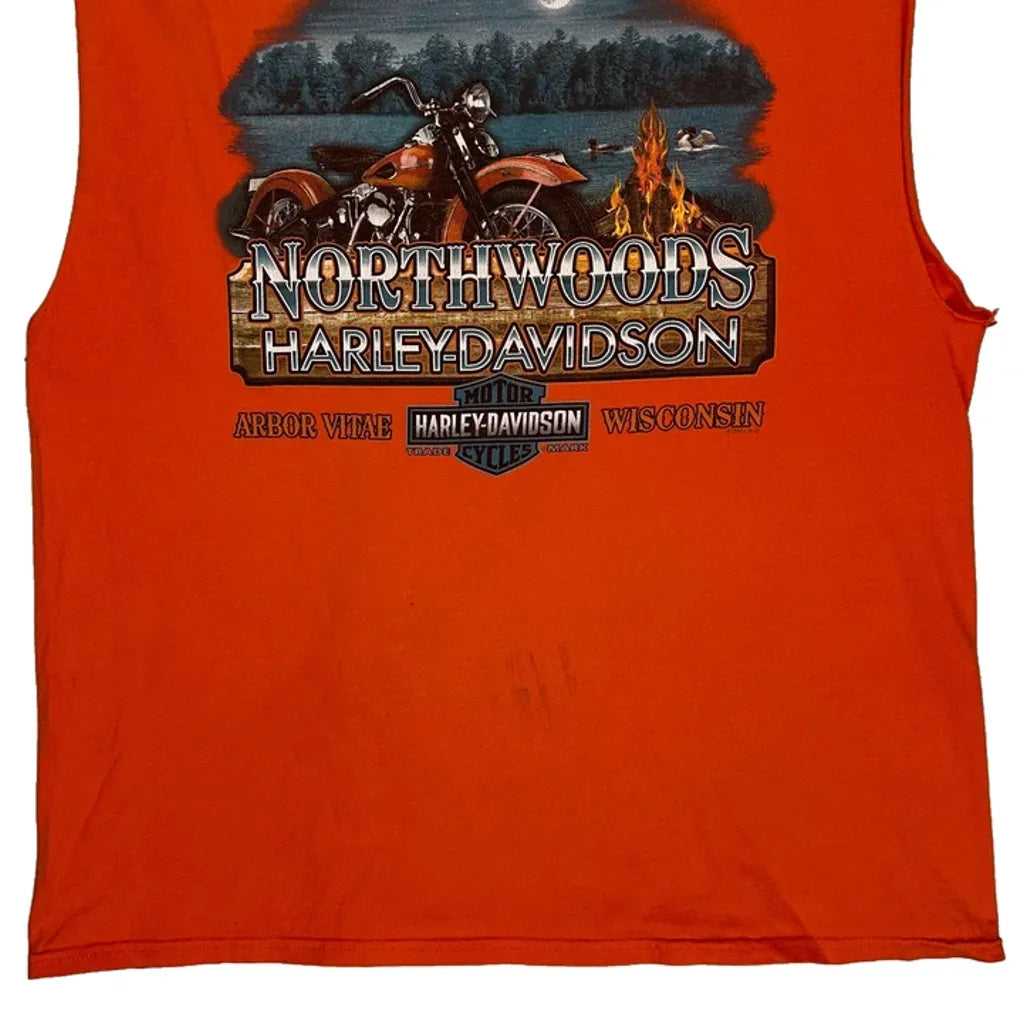 Sleeveless Harley Davidson T-Shirt With Northwoods Graphic On Back