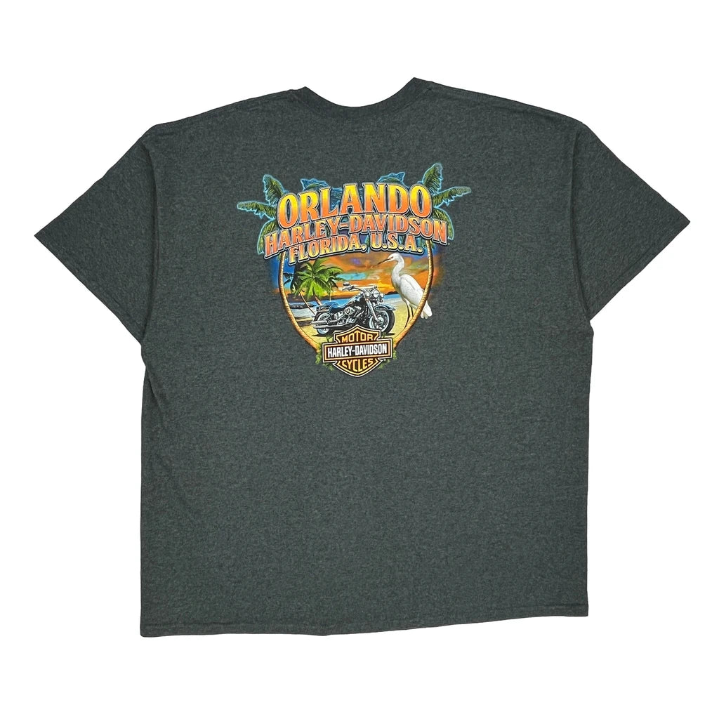 Orlando Harley Davidson Graphic T-Shirt - 2XL Grey Cotton