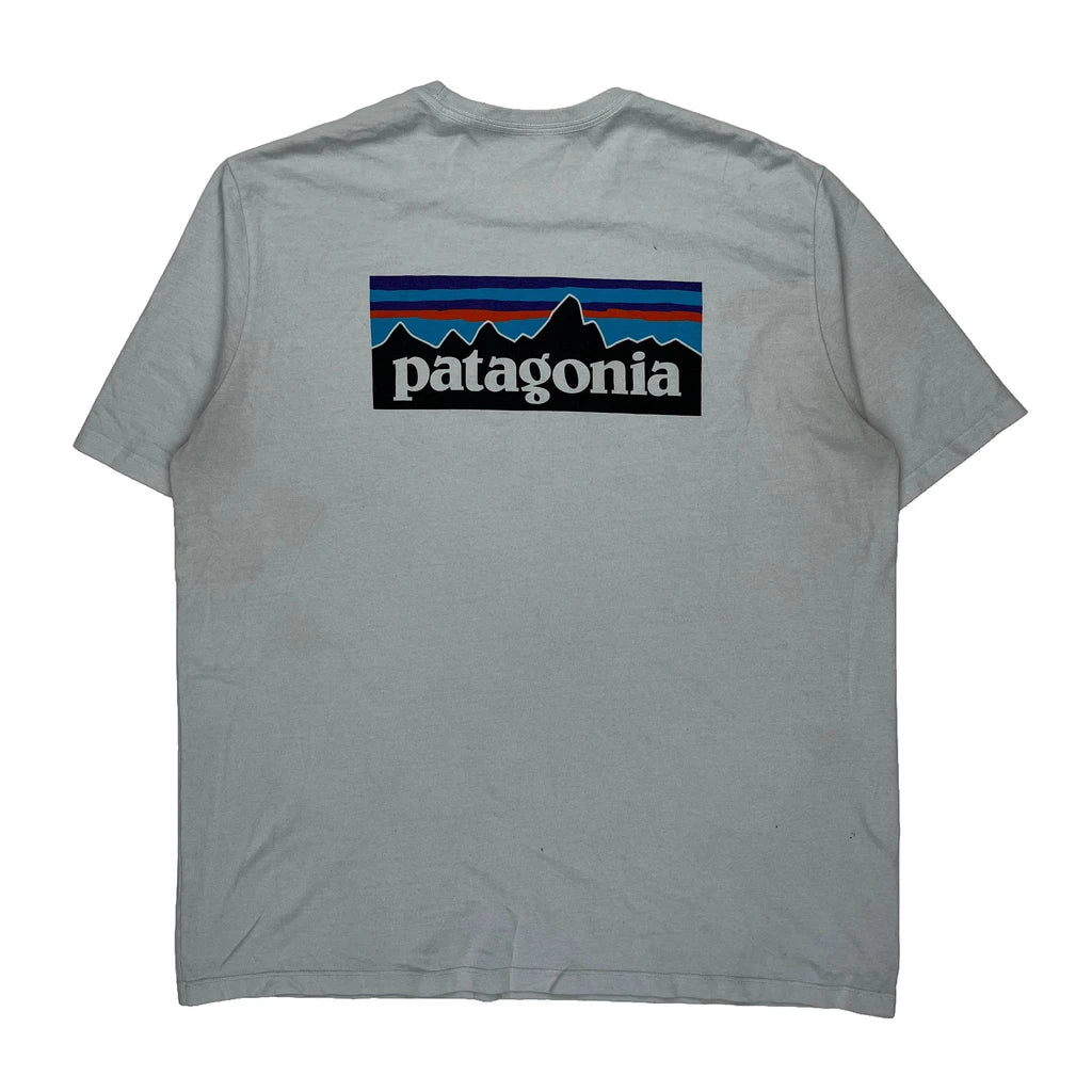 Discoloured, Light Grey Patagonia T-Shirt With Small Front Logo And Large Back Logo