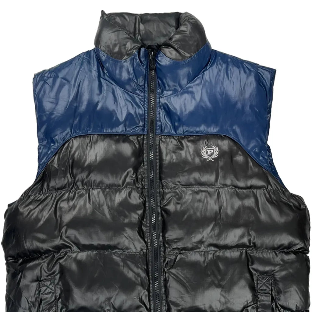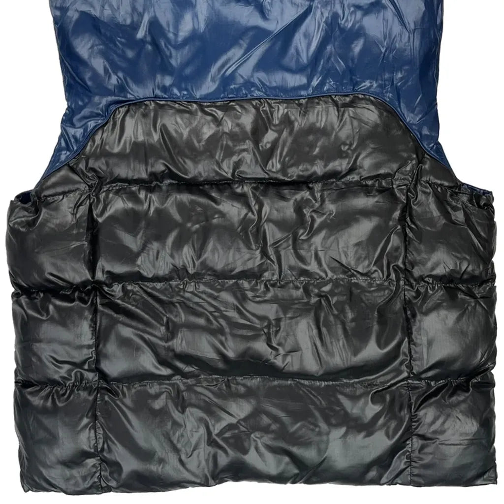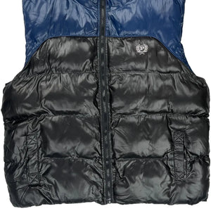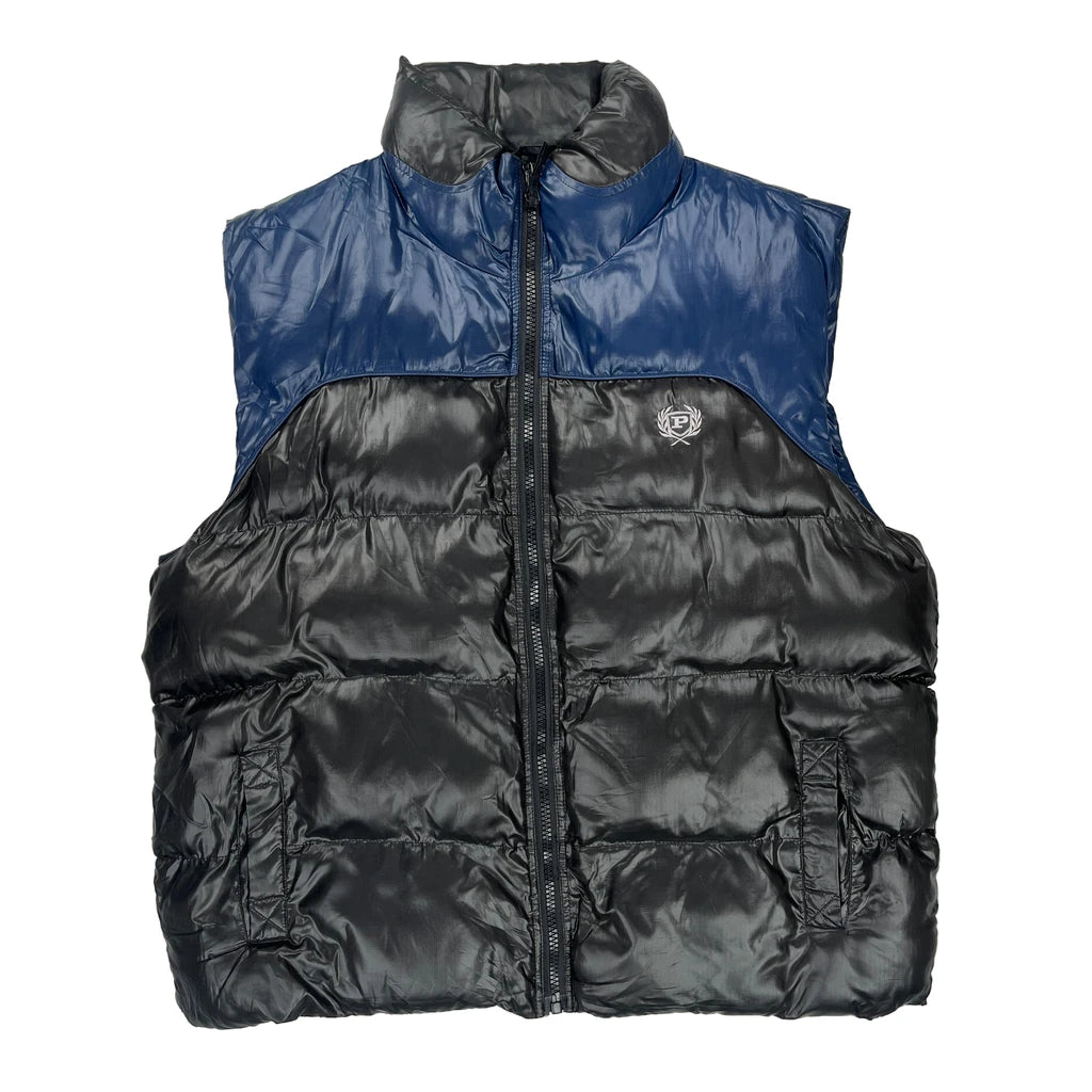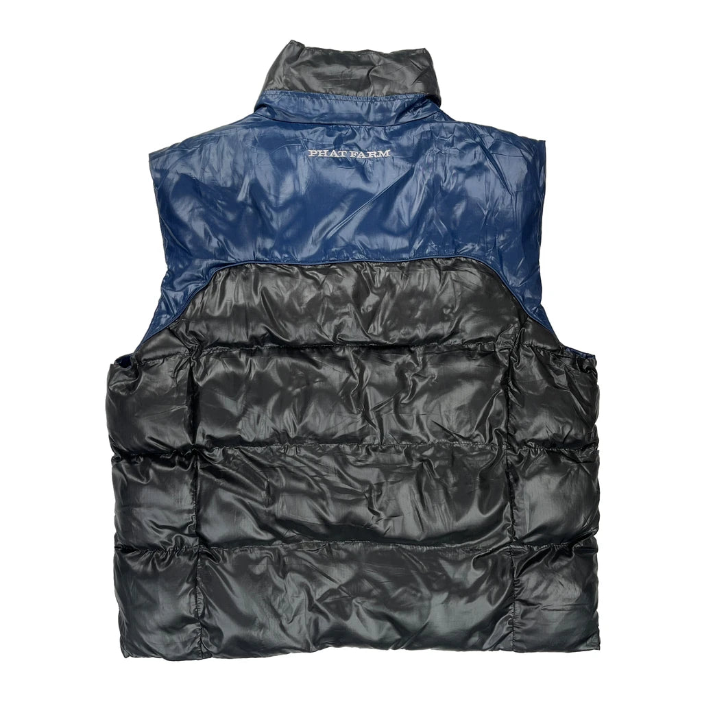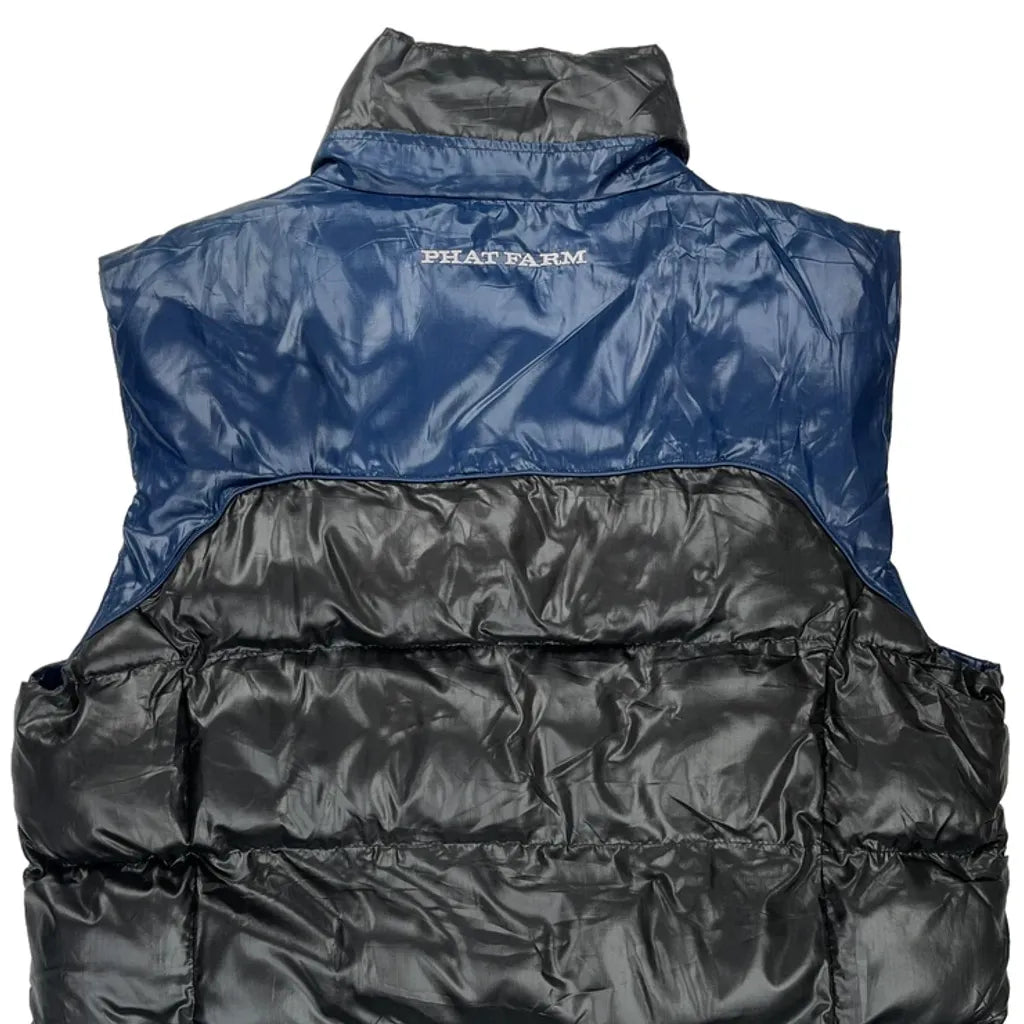 Phat Farm Puffer Vest With Blue And Black Color Block Design.