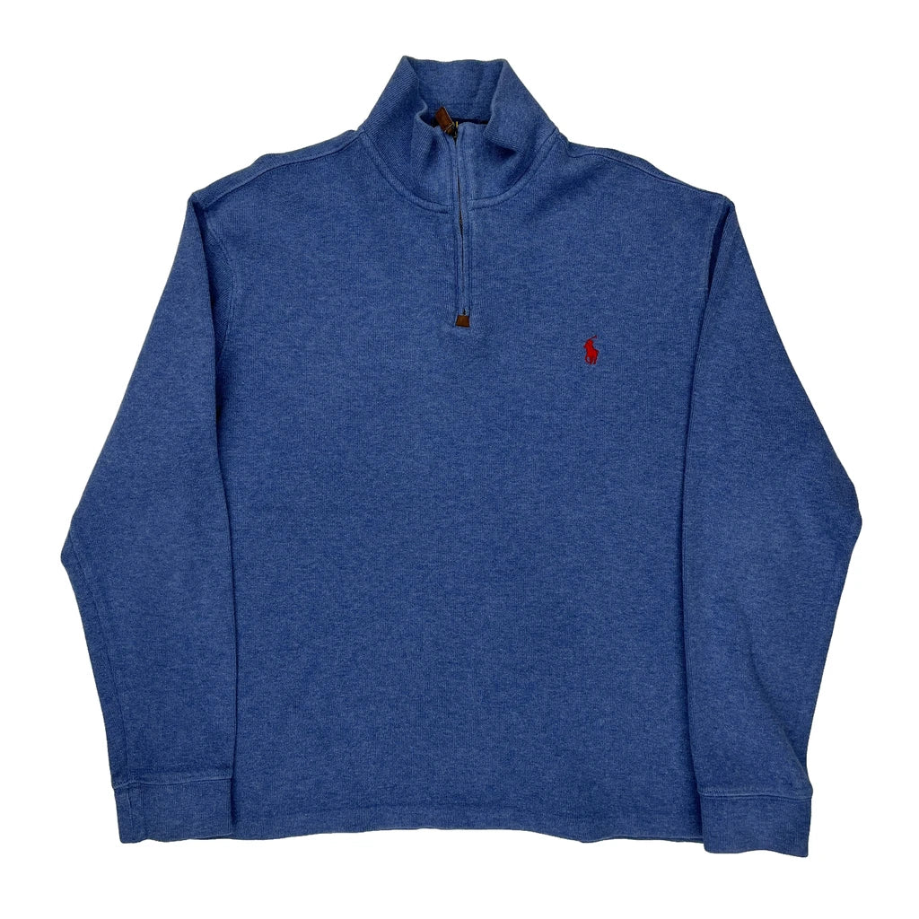 Polo By Ralph Lauren 1/4 Zip - Large Blue Cotton