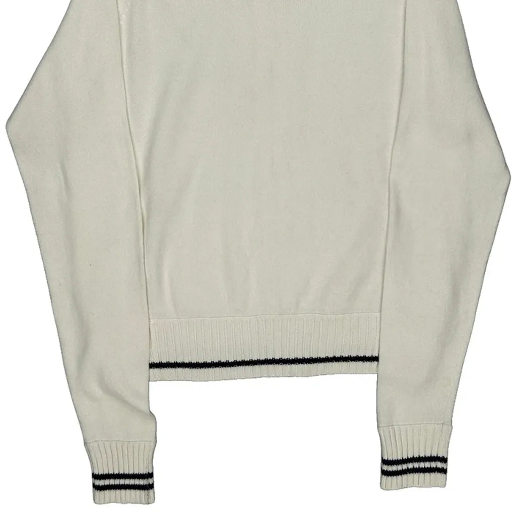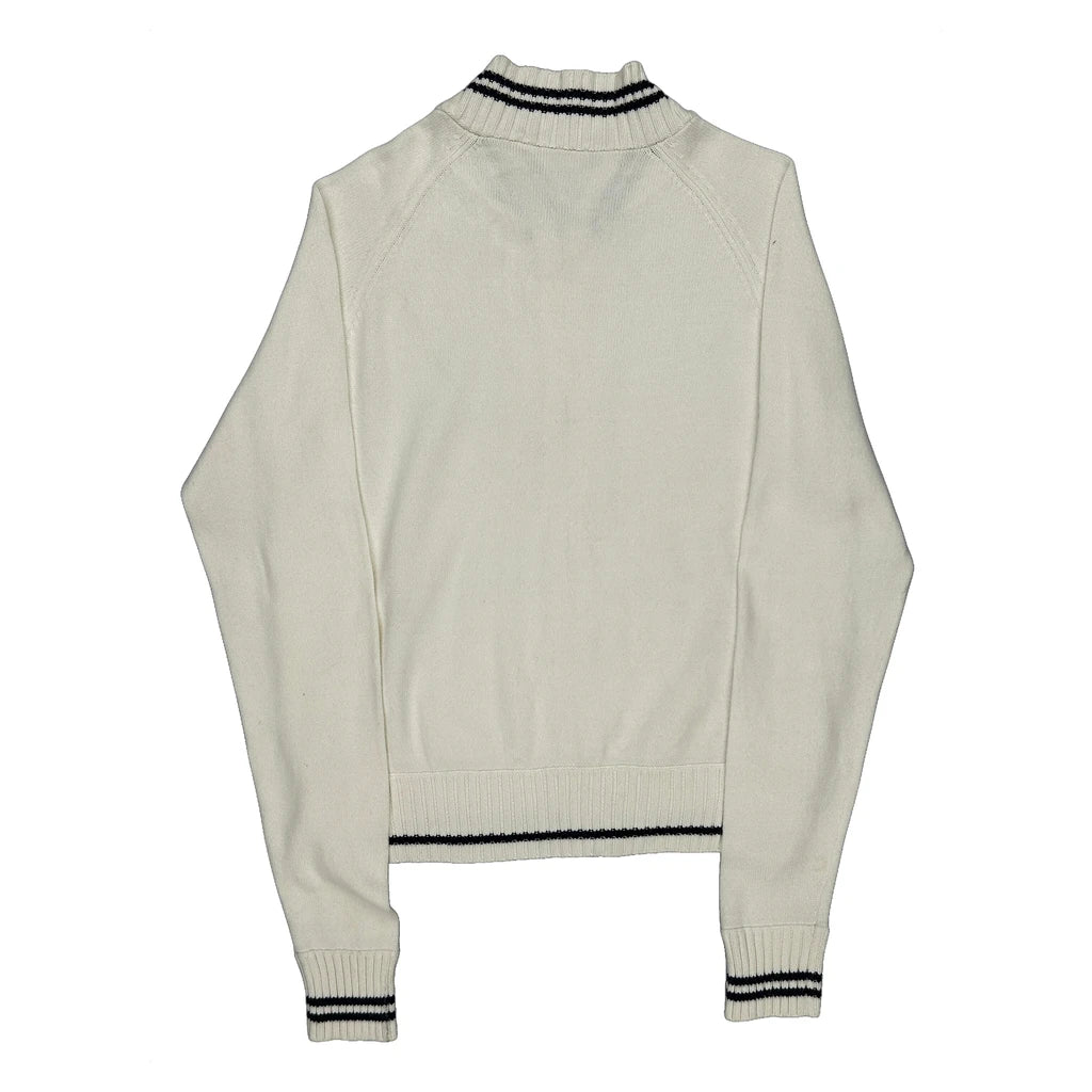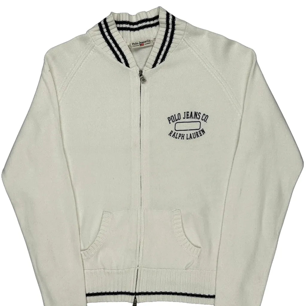White Track Jacket With Black Varsity Stripes, Polo Jeans Co Logo.