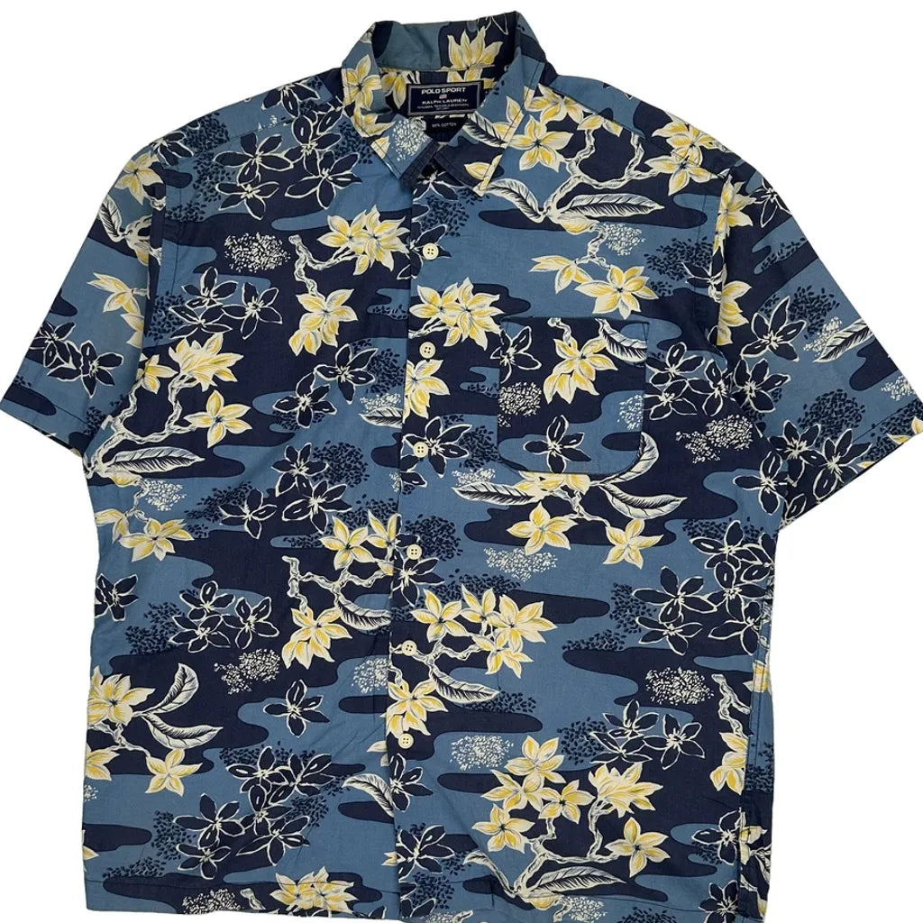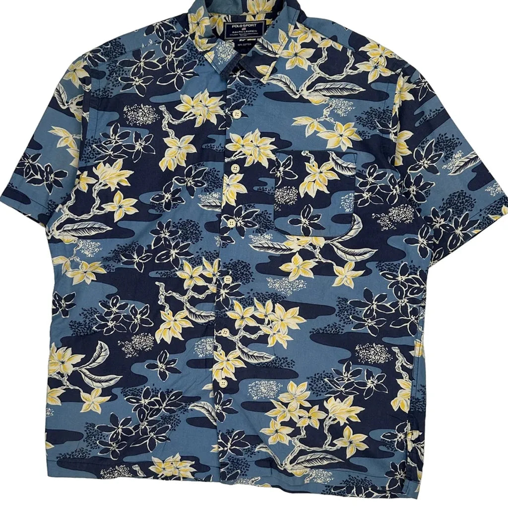 Polo Sport Floral Hawaiian Shirt - Large Yellow Cotton