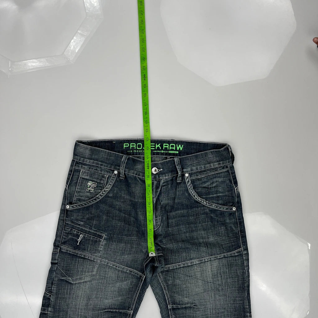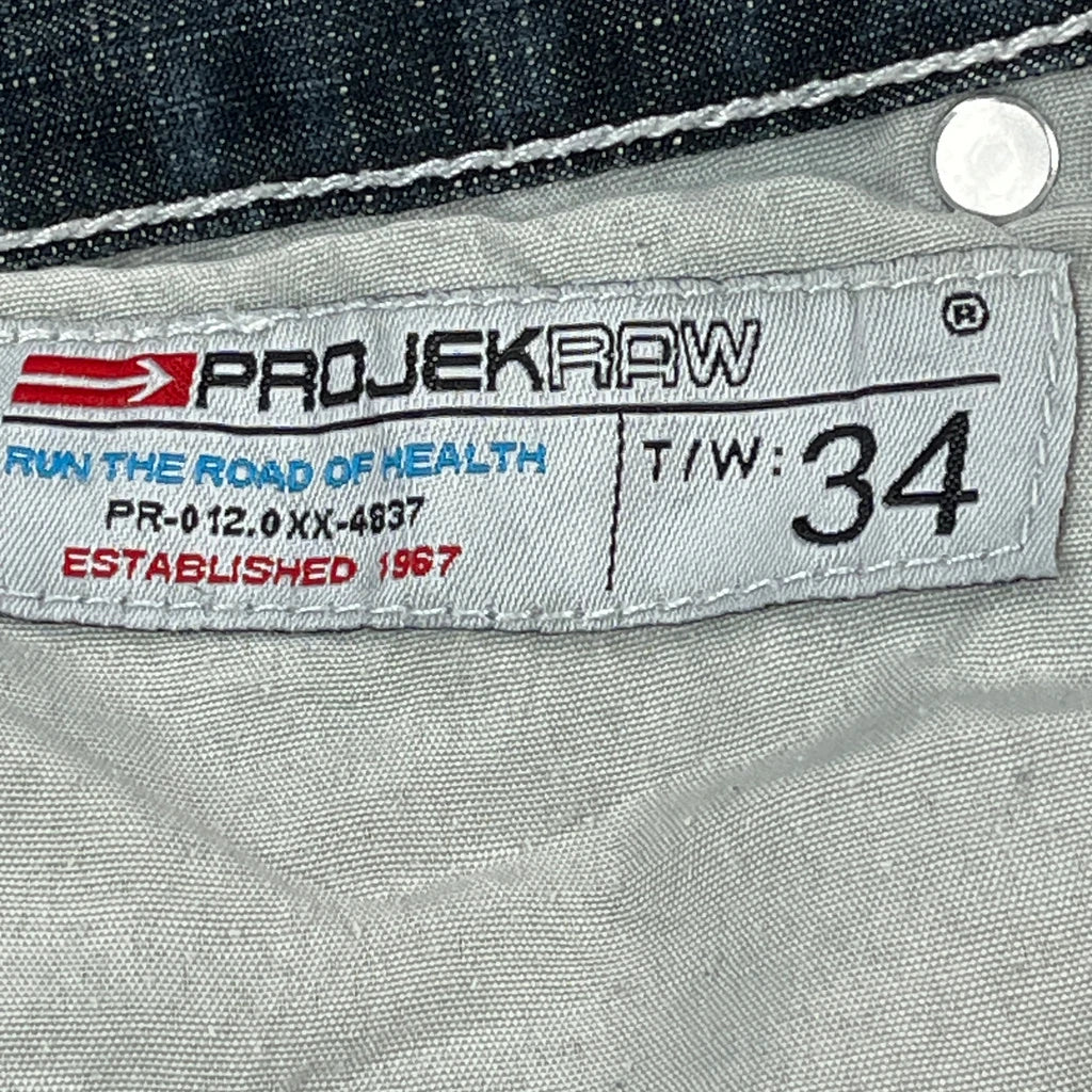 Projekraw Denim Shorts, fit a 34″ Waist and 12″ inseam.