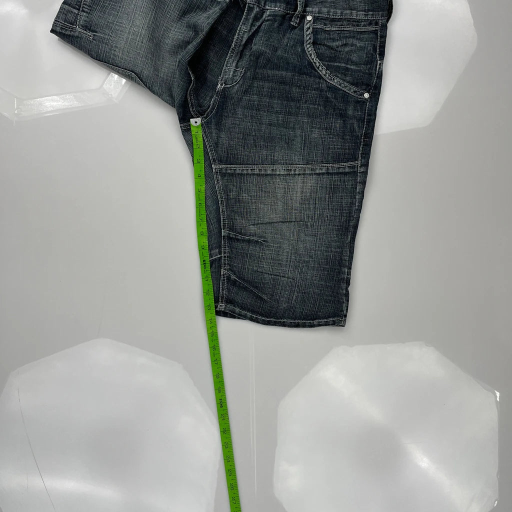 Projekraw Hip Hop Denim Shorts - 34W 12L Dark Wash Denim