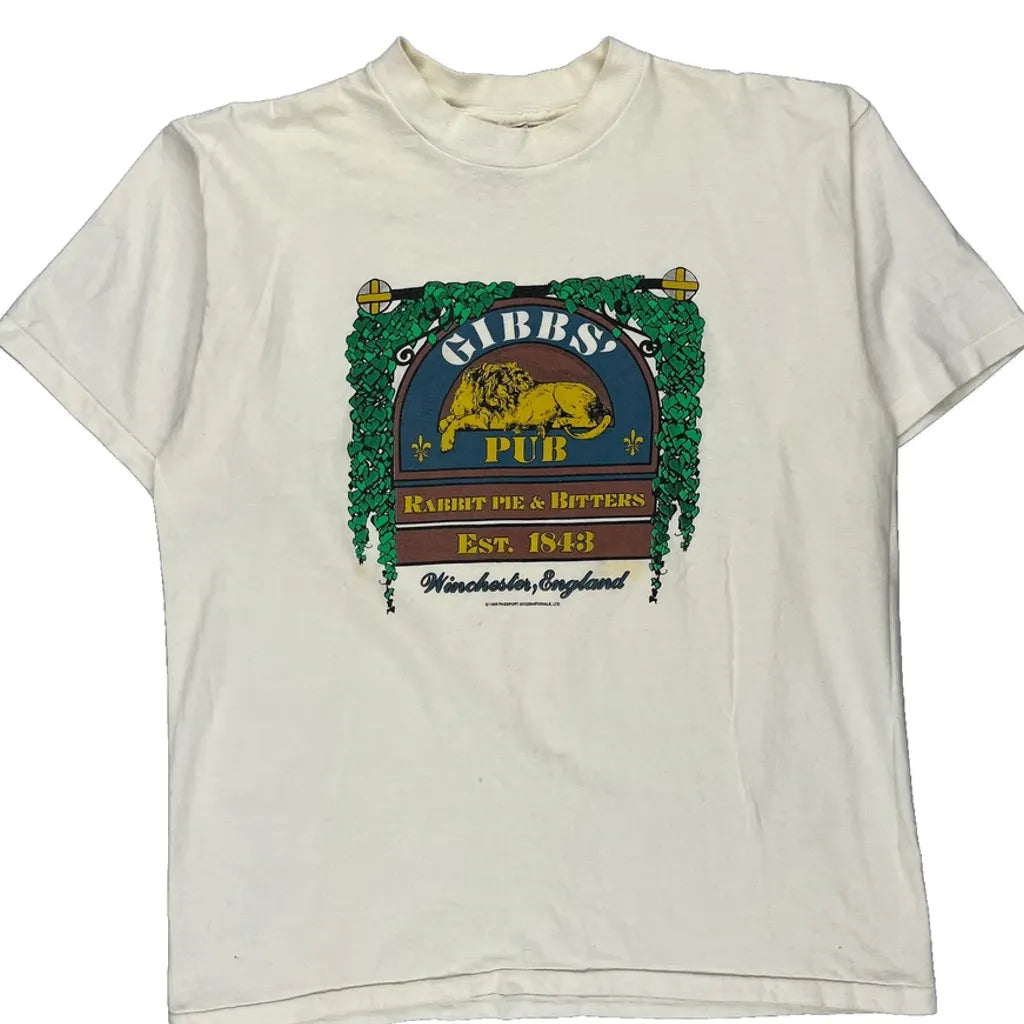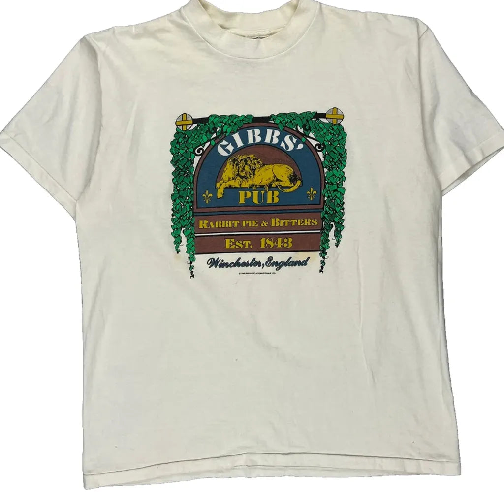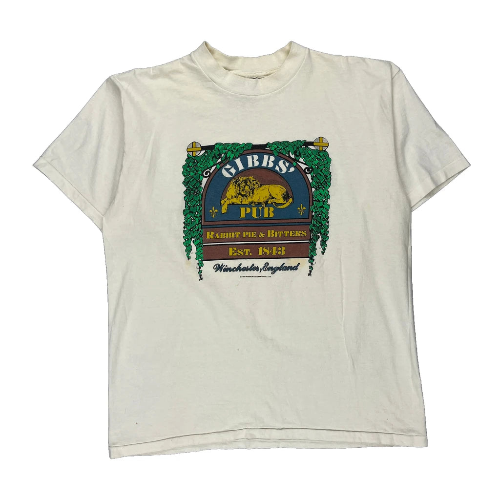 Pub Theme Oneita Graphic T-Shirt - XL White Cotton