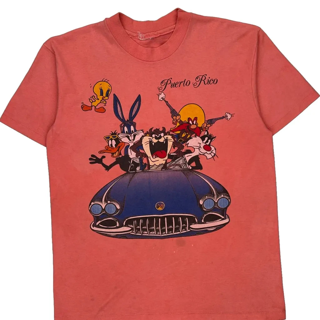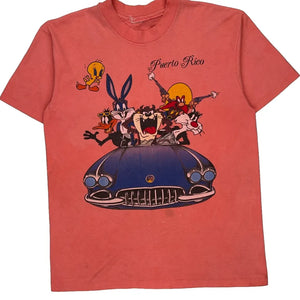 Puerto Rico Looney Tunes Single Stitch T-Shirt - Small Red Cotton