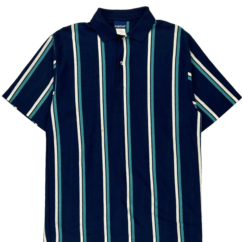 Puritan Single Stitch Polo Shirt - Large Navy Cotton Blend